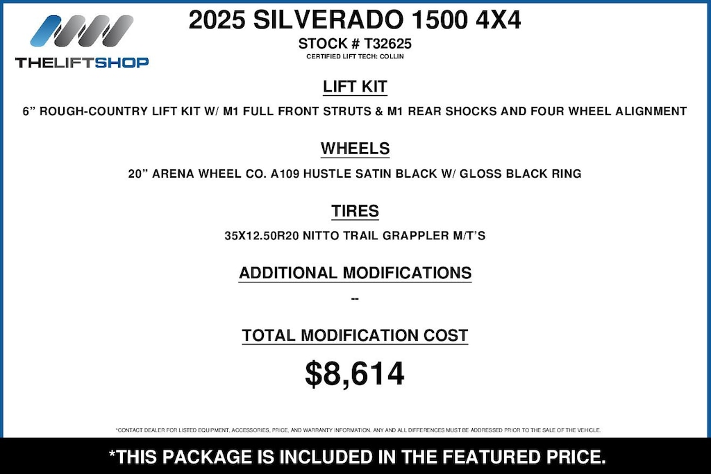 At Lifted Trucks, transparency is our priority. While we strive to provide accurate descriptions of our vehicles, please understand that errors may occur due to the human element involved in the process. All advertised vehicles are subject to actual dealer availability. Certain vehicles listed may not be available, or may have different prices. Prices exclude state tax, license, document preparation fee, smog fee, and finance charges, if applicable. Vehicle options and pricing are subject to change. Prices include all dealer rebates and dealer incentives. Pricing and availability varies by dealership. Please check with your dealer for more information. The dealer is not responsible for specific accessories or options that came with the vehicle when sold new, some of these options might pull from the vin number and be listed on our website, but what you see in the photos is what the vehicle will come with, nothing additional. Images displayed may not be representative of the actual trim level of a vehicle. Colors shown are the most accurate representations available. However, due to the limitations of web and monitor color display, we cannot guarantee that the colors depicted will exactly match the color of the car. Information provided is believed accurate but all specifications, pricing, and availability must be confirmed in writing (directly) with the dealer to be binding. Neither the Dealer nor Dealer.com is responsible for any inaccuracies contained herein and by using this application you the customer acknowledge the foregoing and accept such terms.
