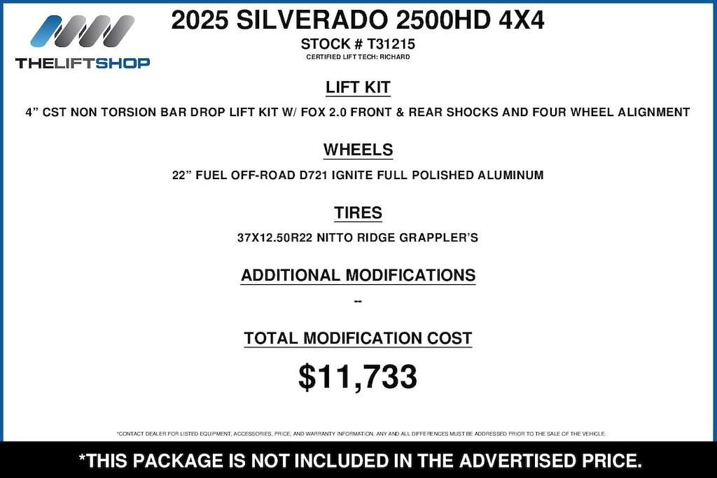 At Lifted Trucks, transparency is our priority. While we strive to provide accurate descriptions of our vehicles, please understand that errors may occur due to the human element involved in the process. All advertised vehicles are subject to actual dealer availability. Certain vehicles listed may not be available, or may have different prices. Prices exclude state tax, license, document preparation fee, smog fee, and finance charges, if applicable. Vehicle options and pricing are subject to change. Prices include all dealer rebates and dealer incentives. Pricing and availability varies by dealership. Please check with your dealer for more information. The dealer is not responsible for specific accessories or options that came with the vehicle when sold new, some of these options might pull from the vin number and be listed on our website, but what you see in the photos is what the vehicle will come with, nothing additional. Images displayed may not be representative of the actual trim level of a vehicle. Colors shown are the most accurate representations available. However, due to the limitations of web and monitor color display, we cannot guarantee that the colors depicted will exactly match the color of the car. Information provided is believed accurate but all specifications, pricing, and availability must be confirmed in writing (directly) with the dealer to be binding. Neither the Dealer nor Dealer.com is responsible for any inaccuracies contained herein and by using this application you the customer acknowledge the foregoing and accept such terms.