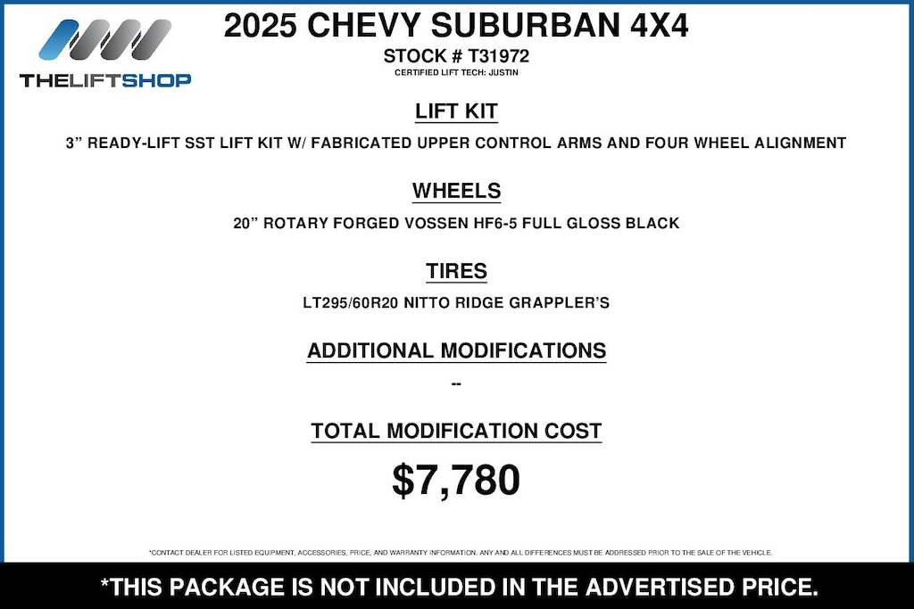 At Lifted Trucks, transparency is our priority. While we strive to provide accurate descriptions of our vehicles, please understand that errors may occur due to the human element involved in the process. All advertised vehicles are subject to actual dealer availability. Certain vehicles listed may not be available, or may have different prices. Prices exclude state tax, license, document preparation fee, smog fee, and finance charges, if applicable. Vehicle options and pricing are subject to change. Prices include all dealer rebates and dealer incentives. Pricing and availability varies by dealership. Please check with your dealer for more information. The dealer is not responsible for specific accessories or options that came with the vehicle when sold new, some of these options might pull from the vin number and be listed on our website, but what you see in the photos is what the vehicle will come with, nothing additional. Images displayed may not be representative of the actual trim level of a vehicle. Colors shown are the most accurate representations available. However, due to the limitations of web and monitor color display, we cannot guarantee that the colors depicted will exactly match the color of the car. Information provided is believed accurate but all specifications, pricing, and availability must be confirmed in writing (directly) with the dealer to be binding. Neither the Dealer nor Dealer.com is responsible for any inaccuracies contained herein and by using this application you the customer acknowledge the foregoing and accept such terms.