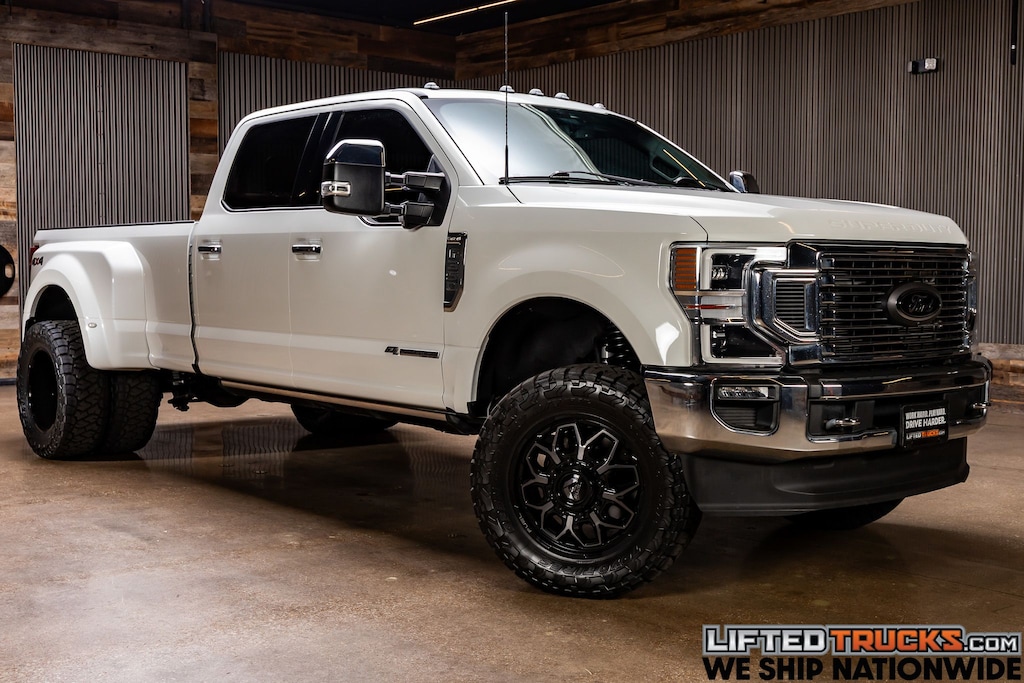 Our Diesel powered Clean Carfax 2022 Ford F-350 King Ranch Crew Cab 4X4 Dually with the Ultimate and Chrome Packs works hard to keep you comfortable in Star White! Motivated by a TurboCharged 6.7 Liter PowerStroke Diesel V8 offering 475hp and 1050lb-ft of torque to a 10 Speed Automatic transmission for almost effortless capability. This Four Wheel Drive truck also rewards you with the Ultimate Trailer Tow Camera System, Pro Trailer Backup Assist, and a premium design. Our F-350 looks ready to rule the road with our package that adds LED lighting with fog lamps, box lighting, a power sunroof, and power running boards to a spray-on bedliner and PowerScope mirrors.