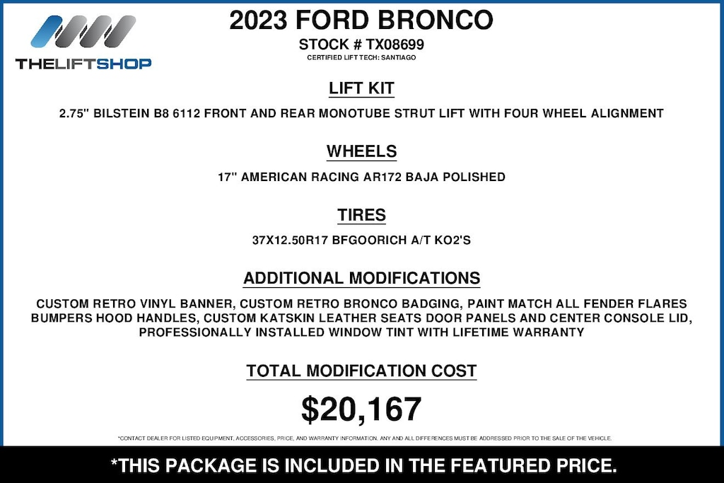 The Lifted Trucks' difference is to provide vehicles that have been enhanced to maintain the highest quality. This may include pre installed products including but not limited to hospital-grade sanitation applications, paint and fabric protection, and theft deterrent solutions. All pre-installed products and their extended benefit plans should be considered optional.