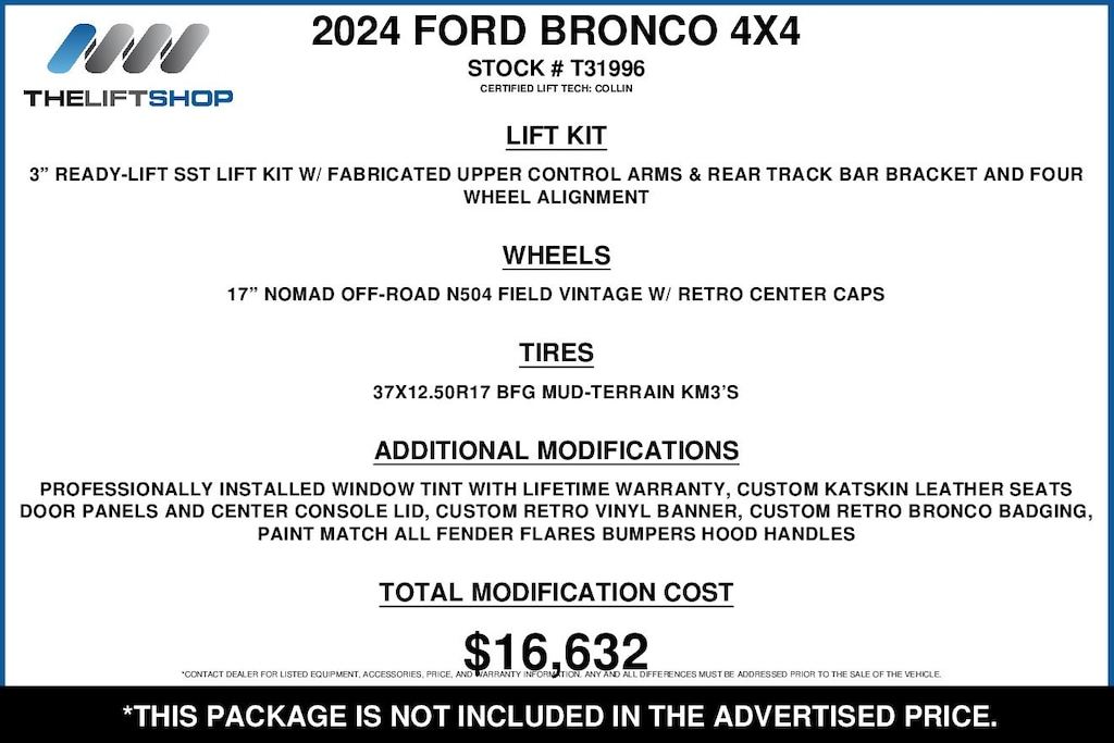 The Lifted Trucks' difference is to provide vehicles that have been enhanced to maintain the highest quality. This may include pre installed products including but not limited to hospital-grade sanitation applications, paint and fabric protection, and theft deterrent solutions. All pre-installed products and their extended benefit plans should be considered optional.
