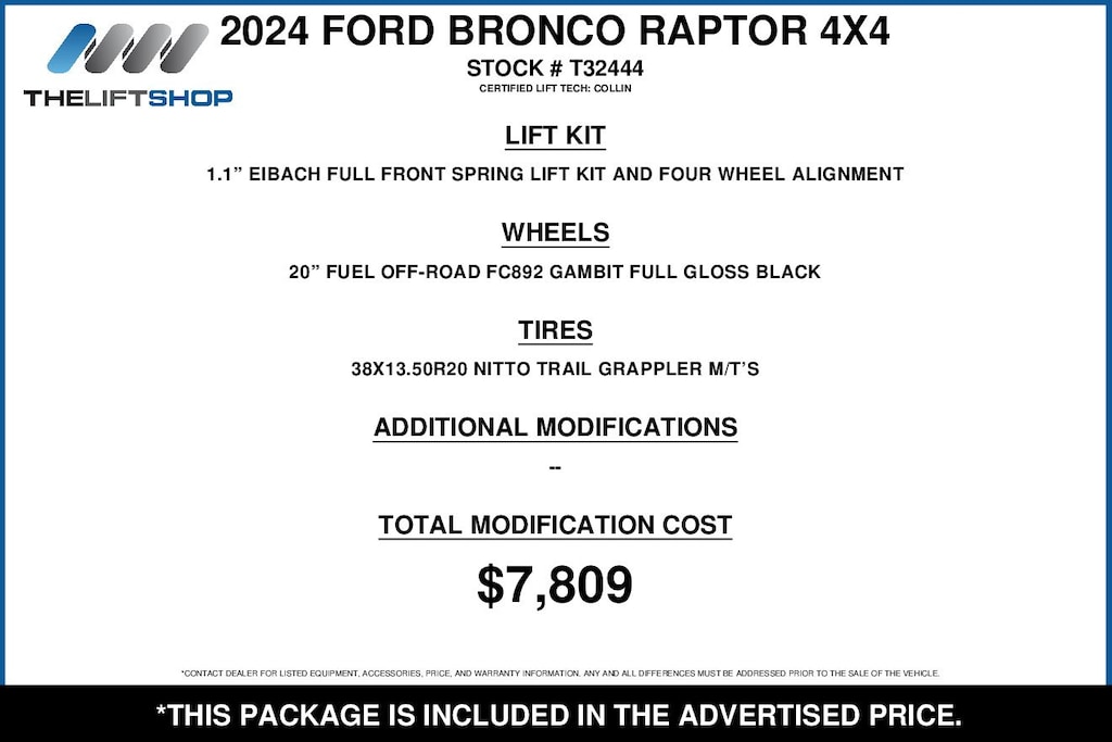 At Lifted Trucks, transparency is our priority. While we strive to provide accurate descriptions of our vehicles, please understand that errors may occur due to the human element involved in the process. All advertised vehicles are subject to actual dealer availability. Certain vehicles listed may not be available, or may have different prices. Prices exclude state tax, license, document preparation fee, smog fee, and finance charges, if applicable. Vehicle options and pricing are subject to change. Prices include all dealer rebates and dealer incentives. Pricing and availability varies by dealership. Please check with your dealer for more information. The dealer is not responsible for specific accessories or options that came with the vehicle when sold new, some of these options might pull from the vin number and be listed on our website, but what you see in the photos is what the vehicle will come with, nothing additional. Images displayed may not be representative of the actual trim level of a vehicle. Colors shown are the most accurate representations available. However, due to the limitations of web and monitor color display, we cannot guarantee that the colors depicted will exactly match the color of the car. Information provided is believed accurate but all specifications, pricing, and availability must be confirmed in writing (directly) with the dealer to be binding. Neither the Dealer nor Dealer.com is responsible for any inaccuracies contained herein and by using this application you the customer acknowledge the foregoing and accept such terms.