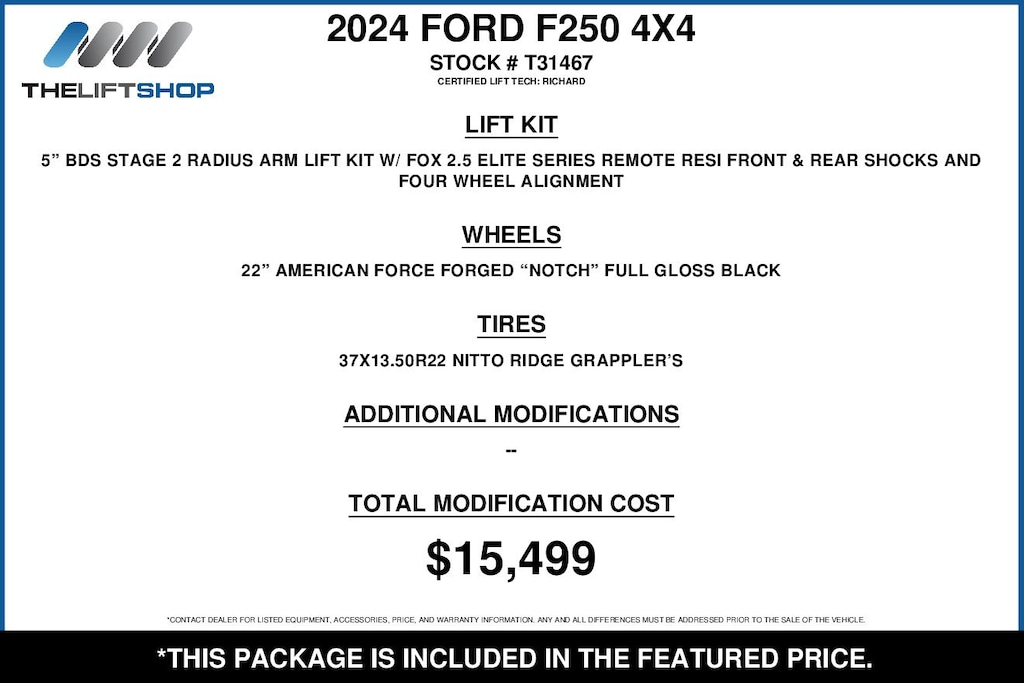 At Lifted Trucks, transparency is our priority. While we strive to provide accurate descriptions of our vehicles, please understand that errors may occur due to the human element involved in the process. All advertised vehicles are subject to actual dealer availability. Certain vehicles listed may not be available, or may have different prices. Prices exclude state tax, license, document preparation fee, smog fee, and finance charges, if applicable. Vehicle options and pricing are subject to change. Prices include all dealer rebates and dealer incentives. Pricing and availability varies by dealership. Please check with your dealer for more information. The dealer is not responsible for specific accessories or options that came with the vehicle when sold new, some of these options might pull from the vin number and be listed on our website, but what you see in the photos is what the vehicle will come with, nothing additional. Images displayed may not be representative of the actual trim level of a vehicle. Colors shown are the most accurate representations available. However, due to the limitations of web and monitor color display, we cannot guarantee that the colors depicted will exactly match the color of the car. Information provided is believed accurate but all specifications, pricing, and availability must be confirmed in writing (directly) with the dealer to be binding. Neither the Dealer nor Dealer.com is responsible for any inaccuracies contained herein and by using this application you the customer acknowledge the foregoing and accept such terms.