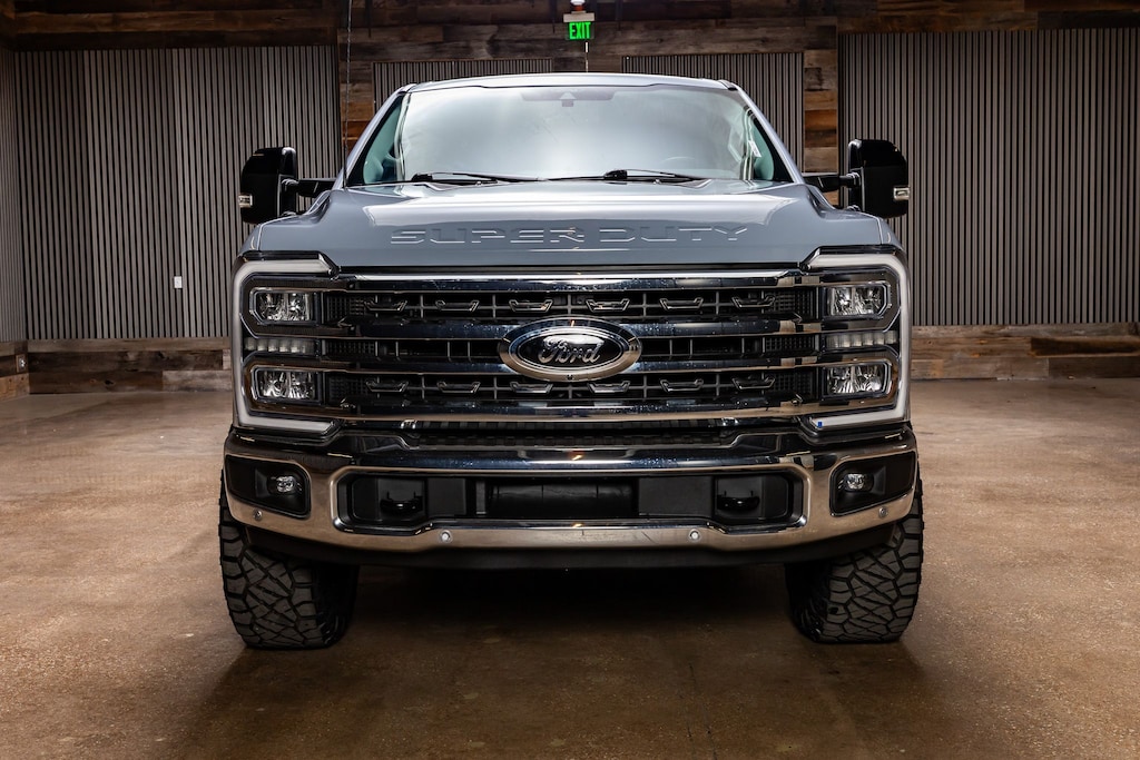Our One Owner, Diesel-powered 2024 Ford F-250 Lariat Crew Cab 4X4 with the Tremor Pack gets jobs done with strength, intelligence, and a bold Glacier Gray Metallic Tri-Coat design! Motivated by a TurboCharged 6.7 Liter High Output PowerStroke Diesel V8 offering 500hp and 1200lb-ft of torque to a 10 Speed Automatic transmission. Robust construction helps this Four Wheel Drive truck make the most of its impressive towing and payload ratings, and it looks fantastic. Our Tremor Pack adds a limited-slip front diff, an electronic locking rear diff, an off-road suspension, a raised ride height, off-road running boards, bold graphics, Rock Crawl mode, and Trail Control to LED lighting, fog lamps, a twin-panel sunroof, a spray-on Bedliner, Custom Fuel wheels, and trailer mirrors with built-in spotlights.