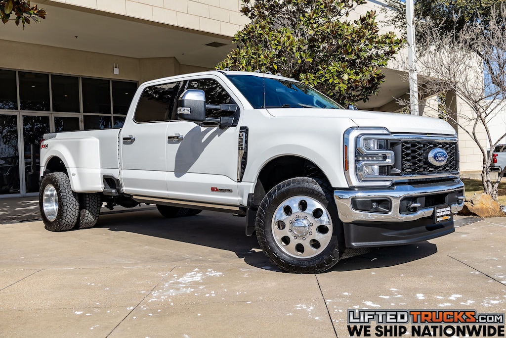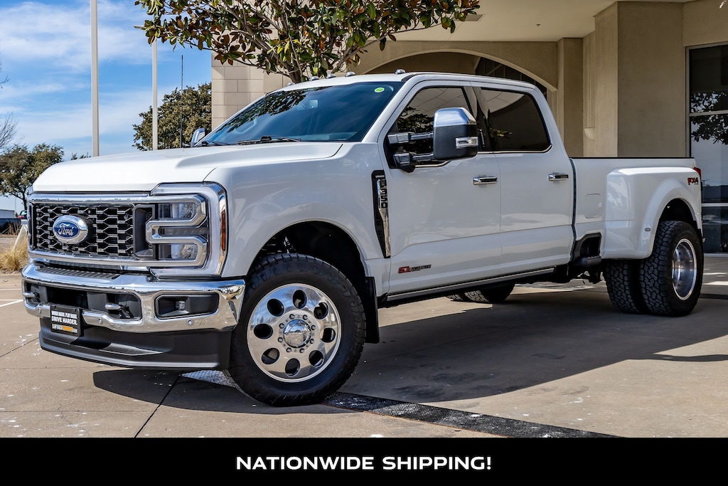 Command our Diesel-driven One Owner and Clean Carfax 2024 Ford F-350 Lariat Crew Cab 4X4 Dually with the Ultimate, FX4 Off-Road, and Chrome Packs, and conquer the tough jobs in Star White Metallic Tri-Coat! Motivated by a TurboCharged 6.7 Liter High Output PowerStroke Diesel V8 serving up 500hp and 1200lb-ft of torque to a 10 Speed Automatic transmission. This Four Wheel Drive truck complements that muscle with a rugged suspension for an easy ride. Equipped with our Ultimate Pack, our bold Ford F-350 adds power running boards to LED lighting, fog lamps, PowerScope trailer mirrors with built-in spotlights, chrome bumpers, a power-lock/remote-release tailgate, a sunroof, and alloy wheels.
