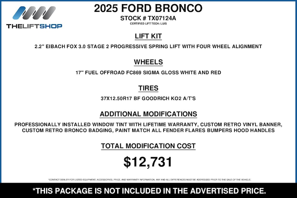 The Lifted Trucks' difference is to provide vehicles that have been enhanced to maintain the highest quality. This may include pre installed products including but not limited to hospital-grade sanitation applications, paint and fabric protection, and theft deterrent solutions. All pre-installed products and their extended benefit plans should be considered optional.