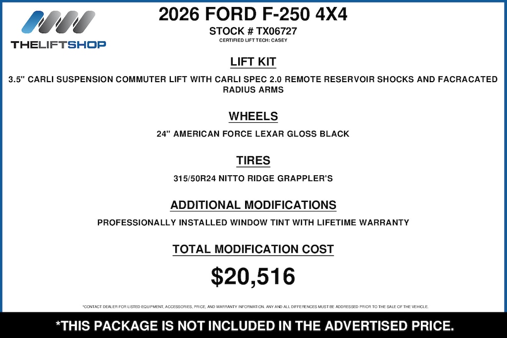 At Lifted Trucks, transparency is our priority. While we strive to provide accurate descriptions of our vehicles, please understand that errors may occur due to the human element involved in the process. All advertised vehicles are subject to actual dealer availability. Certain vehicles listed may not be available, or may have different prices. Prices exclude state tax, license, document preparation fee, smog fee, and finance charges, if applicable. Vehicle options and pricing are subject to change. Prices include all dealer rebates and dealer incentives. Pricing and availability varies by dealership. Please check with your dealer for more information. The dealer is not responsible for specific accessories or options that came with the vehicle when sold new, some of these options might pull from the vin number and be listed on our website, but what you see in the photos is what the vehicle will come with, nothing additional. Images displayed may not be representative of the actual trim level of a vehicle. Colors shown are the most accurate representations available. However, due to the limitations of web and monitor color display, we cannot guarantee that the colors depicted will exactly match the color of the car. Information provided is believed accurate but all specifications, pricing, and availability must be confirmed in writing (directly) with the dealer to be binding. Neither the Dealer nor Dealer.com is responsible for any inaccuracies contained herein and by using this application you the customer acknowledge the foregoing and accept such terms.