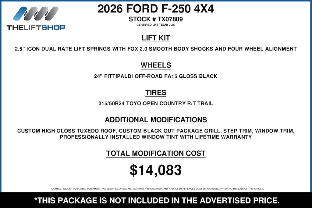 At Lifted Trucks, transparency is our priority. While we strive to provide accurate descriptions of our vehicles, please understand that errors may occur due to the human element involved in the process. All advertised vehicles are subject to actual dealer availability. Certain vehicles listed may not be available, or may have different prices. Prices exclude state tax, license, document preparation fee, smog fee, and finance charges, if applicable. Vehicle options and pricing are subject to change. Prices include all dealer rebates and dealer incentives. Pricing and availability varies by dealership. Please check with your dealer for more information. The dealer is not responsible for specific accessories or options that came with the vehicle when sold new, some of these options might pull from the vin number and be listed on our website, but what you see in the photos is what the vehicle will come with, nothing additional. Images displayed may not be representative of the actual trim level of a vehicle. Colors shown are the most accurate representations available. However, due to the limitations of web and monitor color display, we cannot guarantee that the colors depicted will exactly match the color of the car. Information provided is believed accurate but all specifications, pricing, and availability must be confirmed in writing (directly) with the dealer to be binding. Neither the Dealer nor Dealer.com is responsible for any inaccuracies contained herein and by using this application you the customer acknowledge the foregoing and accept such terms.