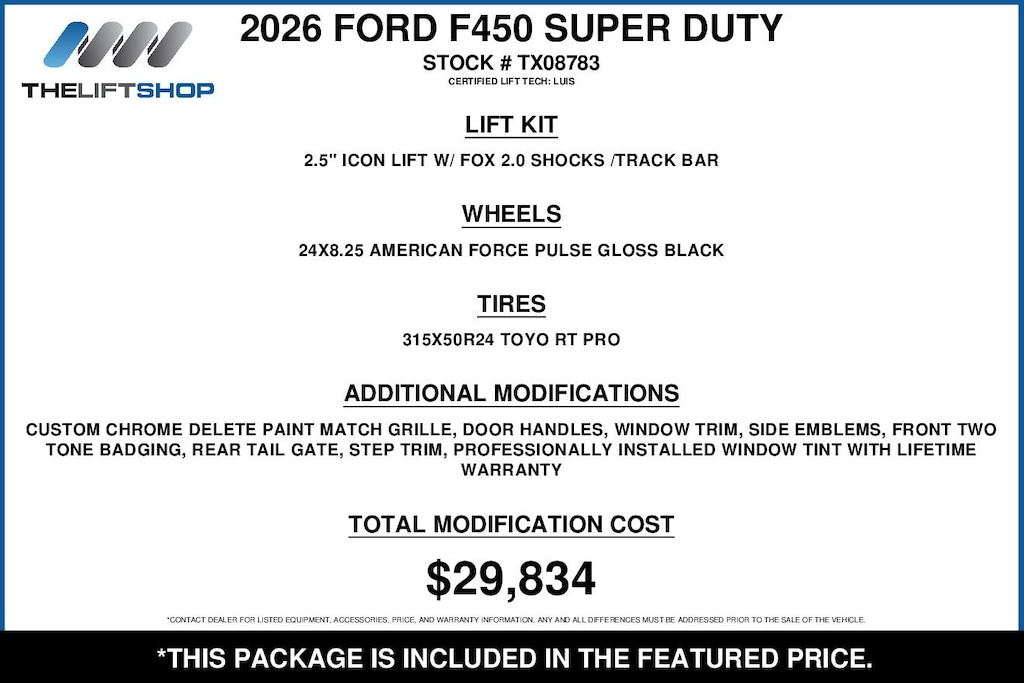 At Lifted Trucks, transparency is our priority. While we strive to provide accurate descriptions of our vehicles, please understand that errors may occur due to the human element involved in the process. All advertised vehicles are subject to actual dealer availability. Certain vehicles listed may not be available, or may have different prices. Prices exclude state tax, license, document preparation fee, smog fee, and finance charges, if applicable. Vehicle options and pricing are subject to change. Prices include all dealer rebates and dealer incentives. Pricing and availability varies by dealership. Please check with your dealer for more information. The dealer is not responsible for specific accessories or options that came with the vehicle when sold new, some of these options might pull from the vin number and be listed on our website, but what you see in the photos is what the vehicle will come with, nothing additional. Images displayed may not be representative of the actual trim level of a vehicle. Colors shown are the most accurate representations available. However, due to the limitations of web and monitor color display, we cannot guarantee that the colors depicted will exactly match the color of the car. Information provided is believed accurate but all specifications, pricing, and availability must be confirmed in writing (directly) with the dealer to be binding. Neither the Dealer nor Dealer.com is responsible for any inaccuracies contained herein and by using this application you the customer acknowledge the foregoing and accept such terms.