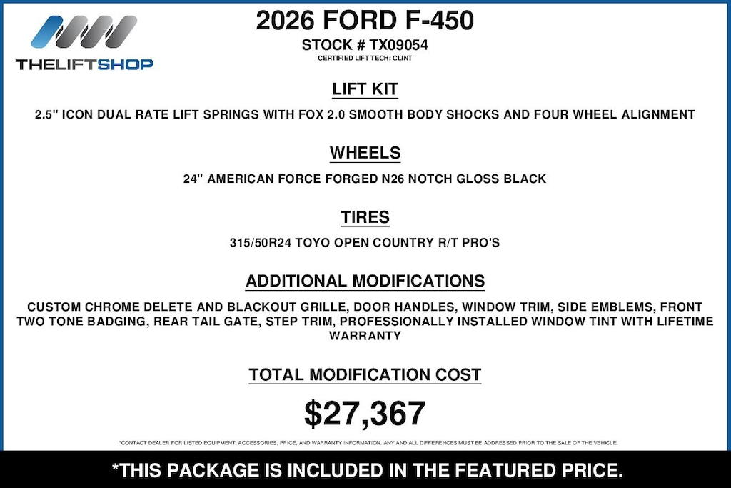 At Lifted Trucks, transparency is our priority. While we strive to provide accurate descriptions of our vehicles, please understand that errors may occur due to the human element involved in the process. All advertised vehicles are subject to actual dealer availability. Certain vehicles listed may not be available, or may have different prices. Prices exclude state tax, license, document preparation fee, smog fee, and finance charges, if applicable. Vehicle options and pricing are subject to change. Prices include all dealer rebates and dealer incentives. Pricing and availability varies by dealership. Please check with your dealer for more information. The dealer is not responsible for specific accessories or options that came with the vehicle when sold new, some of these options might pull from the vin number and be listed on our website, but what you see in the photos is what the vehicle will come with, nothing additional. Images displayed may not be representative of the actual trim level of a vehicle. Colors shown are the most accurate representations available. However, due to the limitations of web and monitor color display, we cannot guarantee that the colors depicted will exactly match the color of the car. Information provided is believed accurate but all specifications, pricing, and availability must be confirmed in writing (directly) with the dealer to be binding. Neither the Dealer nor Dealer.com is responsible for any inaccuracies contained herein and by using this application you the customer acknowledge the foregoing and accept such terms.