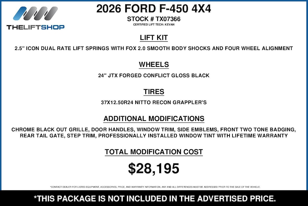 At Lifted Trucks, transparency is our priority. While we strive to provide accurate descriptions of our vehicles, please understand that errors may occur due to the human element involved in the process. All advertised vehicles are subject to actual dealer availability. Certain vehicles listed may not be available, or may have different prices. Prices exclude state tax, license, document preparation fee, smog fee, and finance charges, if applicable. Vehicle options and pricing are subject to change. Prices include all dealer rebates and dealer incentives. Pricing and availability varies by dealership. Please check with your dealer for more information. The dealer is not responsible for specific accessories or options that came with the vehicle when sold new, some of these options might pull from the vin number and be listed on our website, but what you see in the photos is what the vehicle will come with, nothing additional. Images displayed may not be representative of the actual trim level of a vehicle. Colors shown are the most accurate representations available. However, due to the limitations of web and monitor color display, we cannot guarantee that the colors depicted will exactly match the color of the car. Information provided is believed accurate but all specifications, pricing, and availability must be confirmed in writing (directly) with the dealer to be binding. Neither the Dealer nor Dealer.com is responsible for any inaccuracies contained herein and by using this application you the customer acknowledge the foregoing and accept such terms.