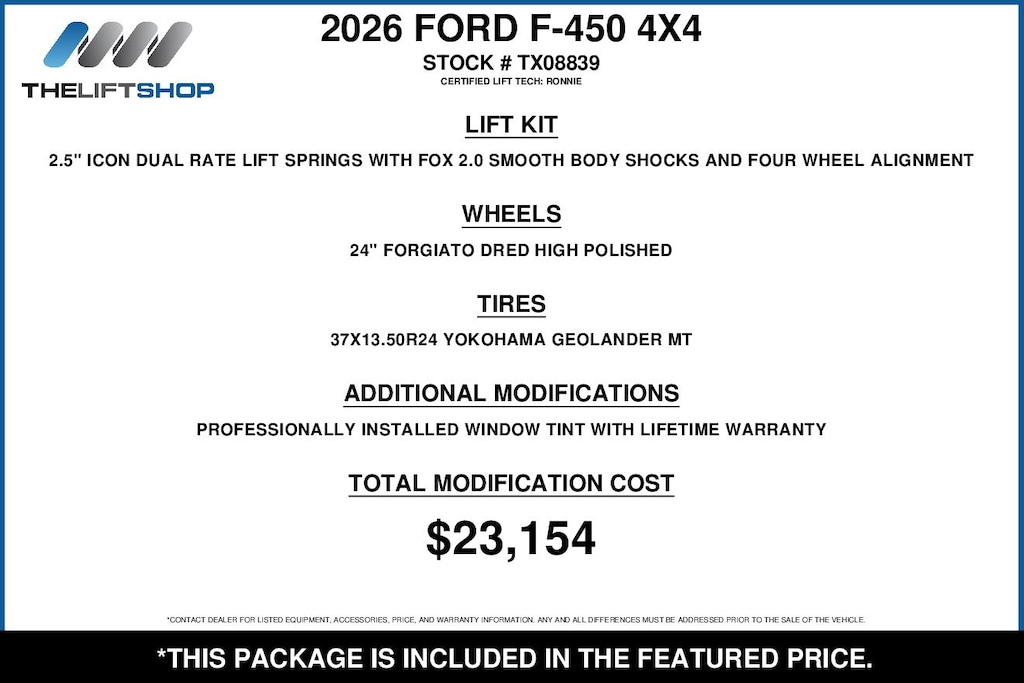 At Lifted Trucks, transparency is our priority. While we strive to provide accurate descriptions of our vehicles, please understand that errors may occur due to the human element involved in the process. All advertised vehicles are subject to actual dealer availability. Certain vehicles listed may not be available, or may have different prices. Prices exclude state tax, license, document preparation fee, smog fee, and finance charges, if applicable. Vehicle options and pricing are subject to change. Prices include all dealer rebates and dealer incentives. Pricing and availability varies by dealership. Please check with your dealer for more information. The dealer is not responsible for specific accessories or options that came with the vehicle when sold new, some of these options might pull from the vin number and be listed on our website, but what you see in the photos is what the vehicle will come with, nothing additional. Images displayed may not be representative of the actual trim level of a vehicle. Colors shown are the most accurate representations available. However, due to the limitations of web and monitor color display, we cannot guarantee that the colors depicted will exactly match the color of the car. Information provided is believed accurate but all specifications, pricing, and availability must be confirmed in writing (directly) with the dealer to be binding. Neither the Dealer nor Dealer.com is responsible for any inaccuracies contained herein and by using this application you the customer acknowledge the foregoing and accept such terms.