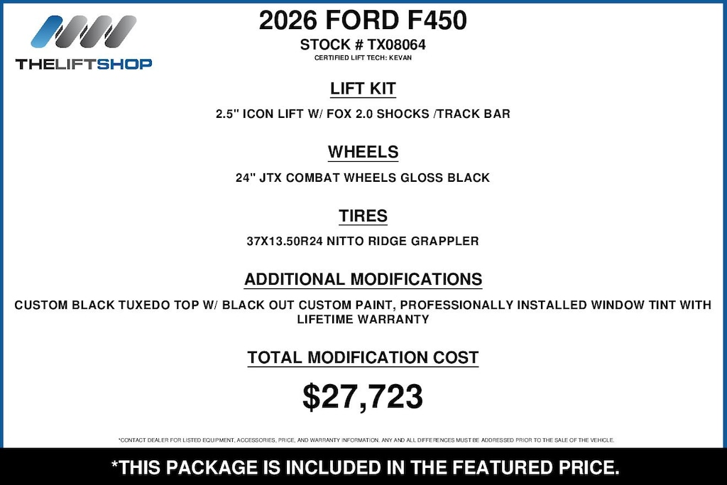 At Lifted Trucks, transparency is our priority. While we strive to provide accurate descriptions of our vehicles, please understand that errors may occur due to the human element involved in the process. All advertised vehicles are subject to actual dealer availability. Certain vehicles listed may not be available, or may have different prices. Prices exclude state tax, license, document preparation fee, smog fee, and finance charges, if applicable. Vehicle options and pricing are subject to change. Prices include all dealer rebates and dealer incentives. Pricing and availability varies by dealership. Please check with your dealer for more information. The dealer is not responsible for specific accessories or options that came with the vehicle when sold new, some of these options might pull from the vin number and be listed on our website, but what you see in the photos is what the vehicle will come with, nothing additional. Images displayed may not be representative of the actual trim level of a vehicle. Colors shown are the most accurate representations available. However, due to the limitations of web and monitor color display, we cannot guarantee that the colors depicted will exactly match the color of the car. Information provided is believed accurate but all specifications, pricing, and availability must be confirmed in writing (directly) with the dealer to be binding. Neither the Dealer nor Dealer.com is responsible for any inaccuracies contained herein and by using this application you the customer acknowledge the foregoing and accept such terms.