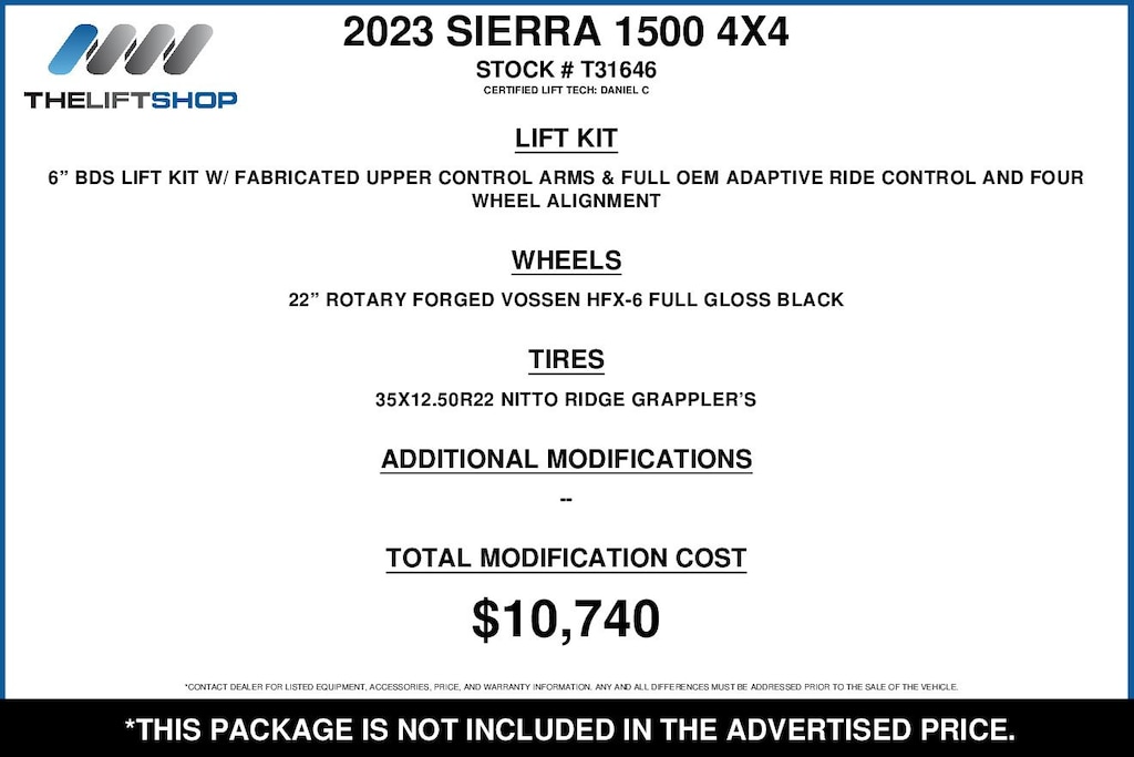 At Lifted Trucks, transparency is our priority. While we strive to provide accurate descriptions of our vehicles, please understand that errors may occur due to the human element involved in the process. All advertised vehicles are subject to actual dealer availability. Certain vehicles listed may not be available, or may have different prices. Prices exclude state tax, license, document preparation fee, smog fee, and finance charges, if applicable. Vehicle options and pricing are subject to change. Prices include all dealer rebates and dealer incentives. Pricing and availability varies by dealership. Please check with your dealer for more information. The dealer is not responsible for specific accessories or options that came with the vehicle when sold new, some of these options might pull from the vin number and be listed on our website, but what you see in the photos is what the vehicle will come with, nothing additional. Images displayed may not be representative of the actual trim level of a vehicle. Colors shown are the most accurate representations available. However, due to the limitations of web and monitor color display, we cannot guarantee that the colors depicted will exactly match the color of the car. Information provided is believed accurate but all specifications, pricing, and availability must be confirmed in writing (directly) with the dealer to be binding. Neither the Dealer nor Dealer.com is responsible for any inaccuracies contained herein and by using this application you the customer acknowledge the foregoing and accept such terms.