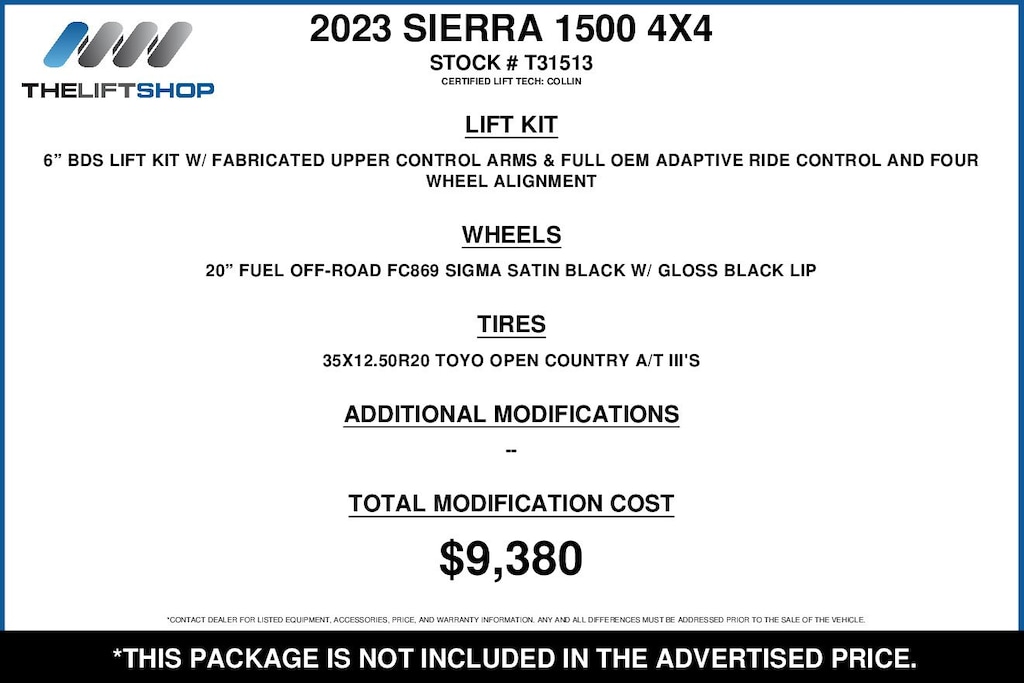 At Lifted Trucks, transparency is our priority. While we strive to provide accurate descriptions of our vehicles, please understand that errors may occur due to the human element involved in the process. All advertised vehicles are subject to actual dealer availability. Certain vehicles listed may not be available, or may have different prices. Prices exclude state tax, license, document preparation fee, smog fee, and finance charges, if applicable. Vehicle options and pricing are subject to change. Prices include all dealer rebates and dealer incentives. Pricing and availability varies by dealership. Please check with your dealer for more information. The dealer is not responsible for specific accessories or options that came with the vehicle when sold new, some of these options might pull from the vin number and be listed on our website, but what you see in the photos is what the vehicle will come with, nothing additional. Images displayed may not be representative of the actual trim level of a vehicle. Colors shown are the most accurate representations available. However, due to the limitations of web and monitor color display, we cannot guarantee that the colors depicted will exactly match the color of the car. Information provided is believed accurate but all specifications, pricing, and availability must be confirmed in writing (directly) with the dealer to be binding. Neither the Dealer nor Dealer.com is responsible for any inaccuracies contained herein and by using this application you the customer acknowledge the foregoing and accept such terms.