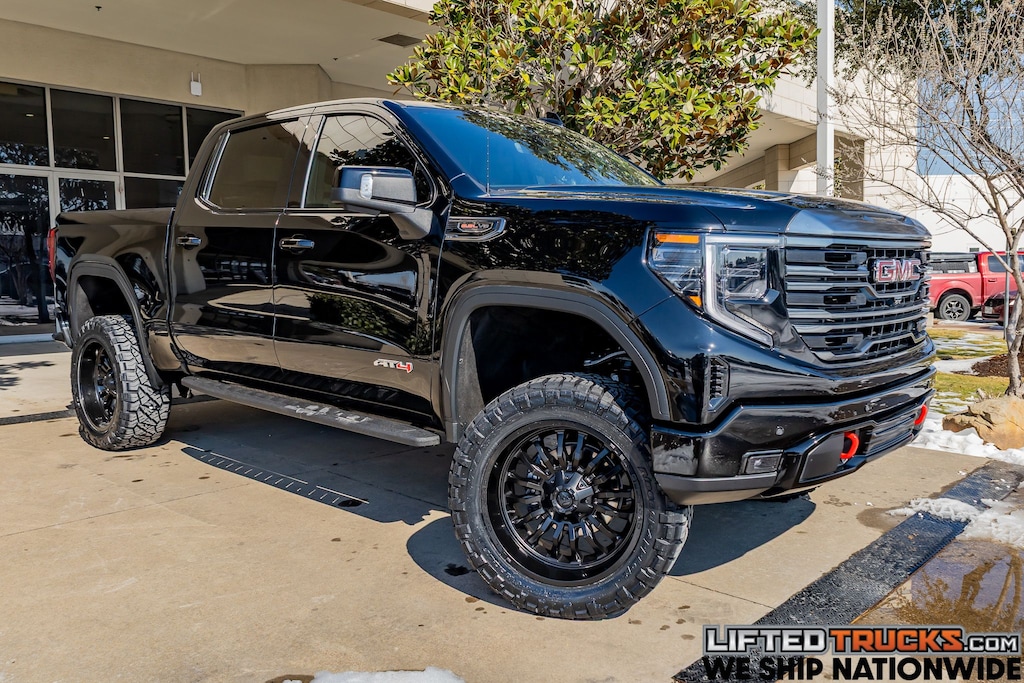 Designed to make a powerful and lasting impression, our 2024 GMC Sierra 1500 AT4 Crew Cab 4X4 with the Technology Pack powers through extreme challenges in Onyx Black! Motivated by a 6.2 Liter EcoTec3 V8 serving up 420hp to a 10 Speed Automatic transmission. A 2-inch lift, a 2-speed transfer case, and an auto-locking rear differential help you dominate rugged terrain, and this Four Wheel Drive truck scores nearly 19mpg on the highway. Our Sierra has off-road style, too, with LED lighting, fog lamps, red recovery hooks, running boards, a sunroof, a spray-on bedliner, a MultiPro tailgate, robust skid plates, 6-inch Readylift Suspension Big Lift with Falcon 1.1 Shocks and Four Wheel Alignment, 22-inch Fuel Offroad D796 Arc Satin Black Wheels, 35X12.50R22 Nitto Ridge Grappler Tires, and perimeter lighting.