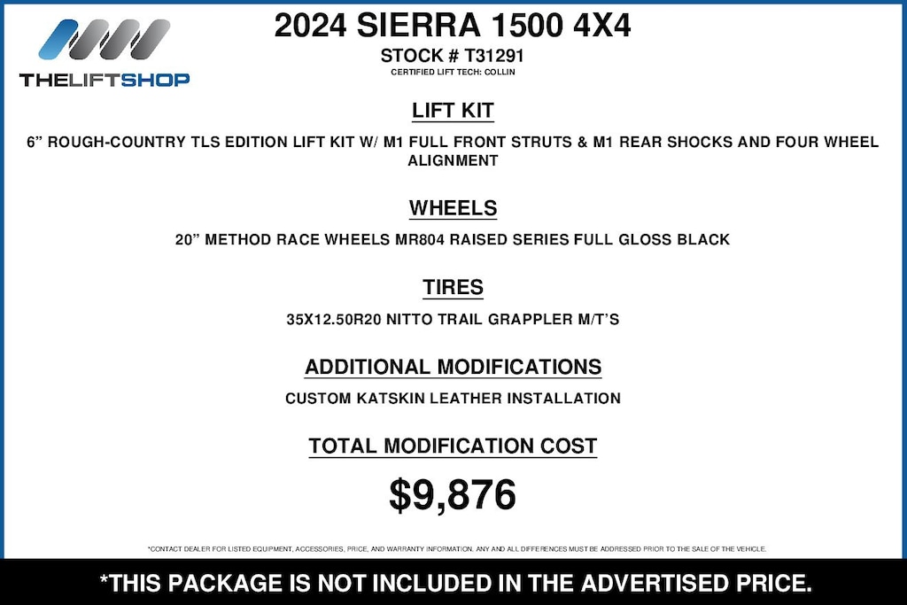 At Lifted Trucks, transparency is our priority. While we strive to provide accurate descriptions of our vehicles, please understand that errors may occur due to the human element involved in the process. All advertised vehicles are subject to actual dealer availability. Certain vehicles listed may not be available, or may have different prices. Prices exclude state tax, license, document preparation fee, smog fee, and finance charges, if applicable. Vehicle options and pricing are subject to change. Prices include all dealer rebates and dealer incentives. Pricing and availability varies by dealership. Please check with your dealer for more information. The dealer is not responsible for specific accessories or options that came with the vehicle when sold new, some of these options might pull from the vin number and be listed on our website, but what you see in the photos is what the vehicle will come with, nothing additional. Images displayed may not be representative of the actual trim level of a vehicle. Colors shown are the most accurate representations available. However, due to the limitations of web and monitor color display, we cannot guarantee that the colors depicted will exactly match the color of the car. Information provided is believed accurate but all specifications, pricing, and availability must be confirmed in writing (directly) with the dealer to be binding. Neither the Dealer nor Dealer.com is responsible for any inaccuracies contained herein and by using this application you the customer acknowledge the foregoing and accept such terms.