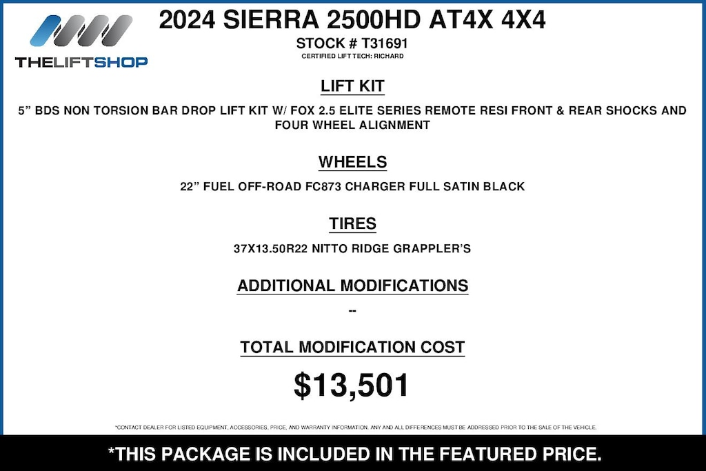 At Lifted Trucks, transparency is our priority. While we strive to provide accurate descriptions of our vehicles, please understand that errors may occur due to the human element involved in the process. All advertised vehicles are subject to actual dealer availability. Certain vehicles listed may not be available, or may have different prices. Prices exclude state tax, license, document preparation fee, smog fee, and finance charges, if applicable. Vehicle options and pricing are subject to change. Prices include all dealer rebates and dealer incentives. Pricing and availability varies by dealership. Please check with your dealer for more information. The dealer is not responsible for specific accessories or options that came with the vehicle when sold new, some of these options might pull from the vin number and be listed on our website, but what you see in the photos is what the vehicle will come with, nothing additional. Images displayed may not be representative of the actual trim level of a vehicle. Colors shown are the most accurate representations available. However, due to the limitations of web and monitor color display, we cannot guarantee that the colors depicted will exactly match the color of the car. Information provided is believed accurate but all specifications, pricing, and availability must be confirmed in writing (directly) with the dealer to be binding. Neither the Dealer nor Dealer.com is responsible for any inaccuracies contained herein and by using this application you the customer acknowledge the foregoing and accept such terms.