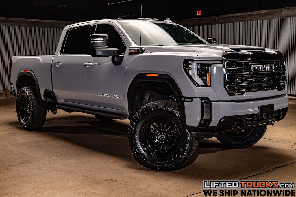 This Lifted 2024 GMC Sierra 3500HD AT4 features a 4-inch CST Non Torsion Bar Drop Lift Kit, Fox 2.0 Front & Rear Shocks, Four Wheel Alignment, 20-inch Method Race MR803 Raised Series Full Gloss Black Wheels, and 37X12.50R20 Nitto Ridge Grappler Tires. Installed by our Lift Tech, Daniel A. *Modifications are optional and are not included in the advertised price.*
