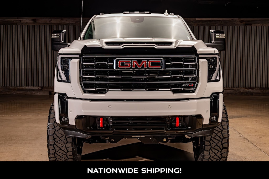 Rugged and diesel-powered, our One Owner, No Accidents Reported 2025 GMC Sierra 2500HD AT4 Crew Cab 4X4 with the Premium Plus Package stands out with a bold and heroic design in Summit White! Motivated by a TurboCharged 6.6 Liter DuraMax Diesel V8 providing 470hp and 975lb-ft of torque to a 10 Speed Allison Automatic transmission. This Four Wheel Drive truck also has an off-road suspension, skid plates, hill-descent control, and an Autotrac 2-speed transfer case for getting to hard-to-reach jobs. Our Sierra boasts LED lighting, red recovery hooks, a 5-inch BDS Non Torsion Bar Drop Lift Kit w/Fox 2.0 Front & Rear Shocks and Four Wheel Alignment, 22-inch Fuel Off-Road D760 Clash Full Gloss Black Wheels, 37X13.50R22 Nitto Ridge Grappler Tires, a spray-on bedliner, off-road high clearance steps, a power-sliding rear window, LED smoked amber roof marker lamps, a power sunroof, and a MultiPro tailgate for high-visibility styling.