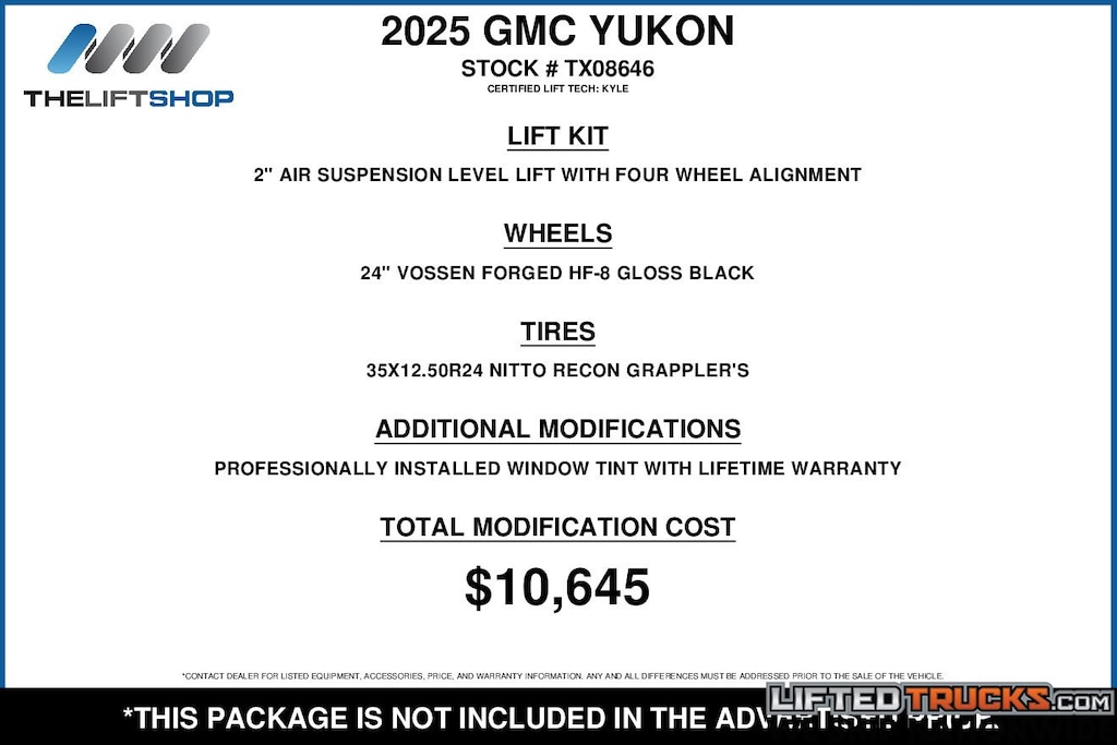 At Lifted Trucks, transparency is our priority. While we strive to provide accurate descriptions of our vehicles, please understand that errors may occur due to the human element involved in the process. All advertised vehicles are subject to actual dealer availability. Certain vehicles listed may not be available, or may have different prices. Prices exclude state tax, license, document preparation fee, smog fee, and finance charges, if applicable. Vehicle options and pricing are subject to change. Prices include all dealer rebates and dealer incentives. Pricing and availability varies by dealership. Please check with your dealer for more information. The dealer is not responsible for specific accessories or options that came with the vehicle when sold new, some of these options might pull from the vin number and be listed on our website, but what you see in the photos is what the vehicle will come with, nothing additional. Images displayed may not be representative of the actual trim level of a vehicle. Colors shown are the most accurate representations available. However, due to the limitations of web and monitor color display, we cannot guarantee that the colors depicted will exactly match the color of the car. Information provided is believed accurate but all specifications, pricing, and availability must be confirmed in writing (directly) with the dealer to be binding. Neither the Dealer nor Dealer.com is responsible for any inaccuracies contained herein and by using this application you the customer acknowledge the foregoing and accept such terms.