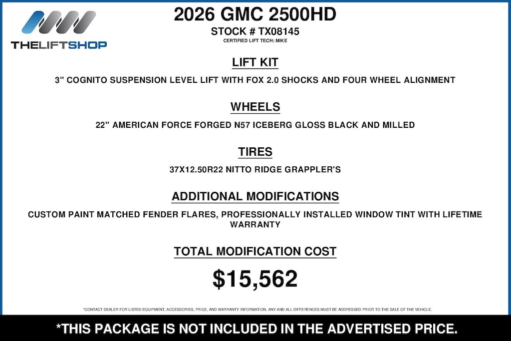 At Lifted Trucks, transparency is our priority. While we strive to provide accurate descriptions of our vehicles, please understand that errors may occur due to the human element involved in the process. All advertised vehicles are subject to actual dealer availability. Certain vehicles listed may not be available, or may have different prices. Prices exclude state tax, license, document preparation fee, smog fee, and finance charges, if applicable. Vehicle options and pricing are subject to change. Prices include all dealer rebates and dealer incentives. Pricing and availability varies by dealership. Please check with your dealer for more information. The dealer is not responsible for specific accessories or options that came with the vehicle when sold new, some of these options might pull from the vin number and be listed on our website, but what you see in the photos is what the vehicle will come with, nothing additional. Images displayed may not be representative of the actual trim level of a vehicle. Colors shown are the most accurate representations available. However, due to the limitations of web and monitor color display, we cannot guarantee that the colors depicted will exactly match the color of the car. Information provided is believed accurate but all specifications, pricing, and availability must be confirmed in writing (directly) with the dealer to be binding. Neither the Dealer nor Dealer.com is responsible for any inaccuracies contained herein and by using this application you the customer acknowledge the foregoing and accept such terms.
