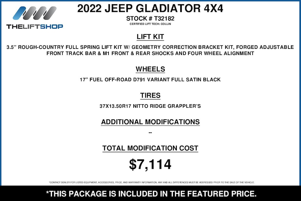 At Lifted Trucks, transparency is our priority. While we strive to provide accurate descriptions of our vehicles, please understand that errors may occur due to the human element involved in the process. All advertised vehicles are subject to actual dealer availability. Certain vehicles listed may not be available, or may have different prices. Prices exclude state tax, license, document preparation fee, smog fee, and finance charges, if applicable. Vehicle options and pricing are subject to change. Prices include all dealer rebates and dealer incentives. Pricing and availability varies by dealership. Please check with your dealer for more information. The dealer is not responsible for specific accessories or options that came with the vehicle when sold new, some of these options might pull from the vin number and be listed on our website, but what you see in the photos is what the vehicle will come with, nothing additional. Images displayed may not be representative of the actual trim level of a vehicle. Colors shown are the most accurate representations available. However, due to the limitations of web and monitor color display, we cannot guarantee that the colors depicted will exactly match the color of the car. Information provided is believed accurate but all specifications, pricing, and availability must be confirmed in writing (directly) with the dealer to be binding. Neither the Dealer nor Dealer.com is responsible for any inaccuracies contained herein and by using this application you the customer acknowledge the foregoing and accept such terms.