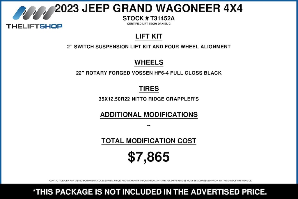 At Lifted Trucks, transparency is our priority. While we strive to provide accurate descriptions of our vehicles, please understand that errors may occur due to the human element involved in the process. All advertised vehicles are subject to actual dealer availability. Certain vehicles listed may not be available, or may have different prices. Prices exclude state tax, license, document preparation fee, smog fee, and finance charges, if applicable. Vehicle options and pricing are subject to change. Prices include all dealer rebates and dealer incentives. Pricing and availability varies by dealership. Please check with your dealer for more information. The dealer is not responsible for specific accessories or options that came with the vehicle when sold new, some of these options might pull from the vin number and be listed on our website, but what you see in the photos is what the vehicle will come with, nothing additional. Images displayed may not be representative of the actual trim level of a vehicle. Colors shown are the most accurate representations available. However, due to the limitations of web and monitor color display, we cannot guarantee that the colors depicted will exactly match the color of the car. Information provided is believed accurate but all specifications, pricing, and availability must be confirmed in writing (directly) with the dealer to be binding. Neither the Dealer nor Dealer.com is responsible for any inaccuracies contained herein and by using this application you the customer acknowledge the foregoing and accept such terms.