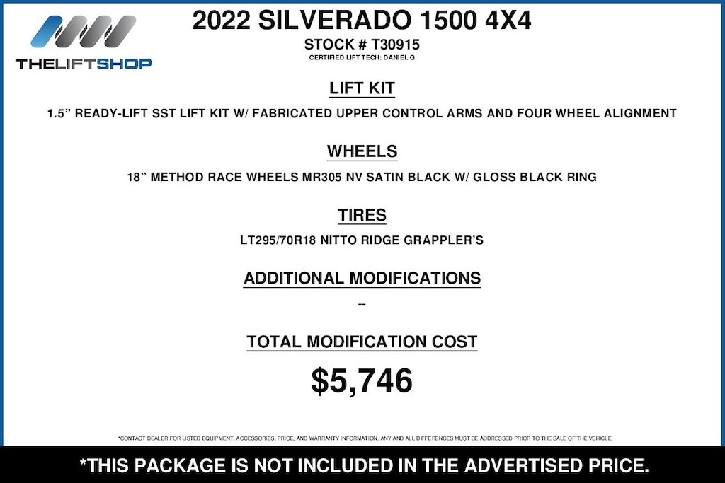 At Lifted Trucks, transparency is our priority. While we strive to provide accurate descriptions of our vehicles, please understand that errors may occur due to the human element involved in the process. All advertised vehicles are subject to actual dealer availability. Certain vehicles listed may not be available, or may have different prices. Prices exclude state tax, license, document preparation fee, smog fee, and finance charges, if applicable. Vehicle options and pricing are subject to change. Prices include all dealer rebates and dealer incentives. Pricing and availability varies by dealership. Please check with your dealer for more information. The dealer is not responsible for specific accessories or options that came with the vehicle when sold new, some of these options might pull from the vin number and be listed on our website, but what you see in the photos is what the vehicle will come with, nothing additional. Images displayed may not be representative of the actual trim level of a vehicle. Colors shown are the most accurate representations available. However, due to the limitations of web and monitor color display, we cannot guarantee that the colors depicted will exactly match the color of the car. Information provided is believed accurate but all specifications, pricing, and availability must be confirmed in writing (directly) with the dealer to be binding. Neither the Dealer nor Dealer.com is responsible for any inaccuracies contained herein and by using this application you the customer acknowledge the foregoing and accept such terms.