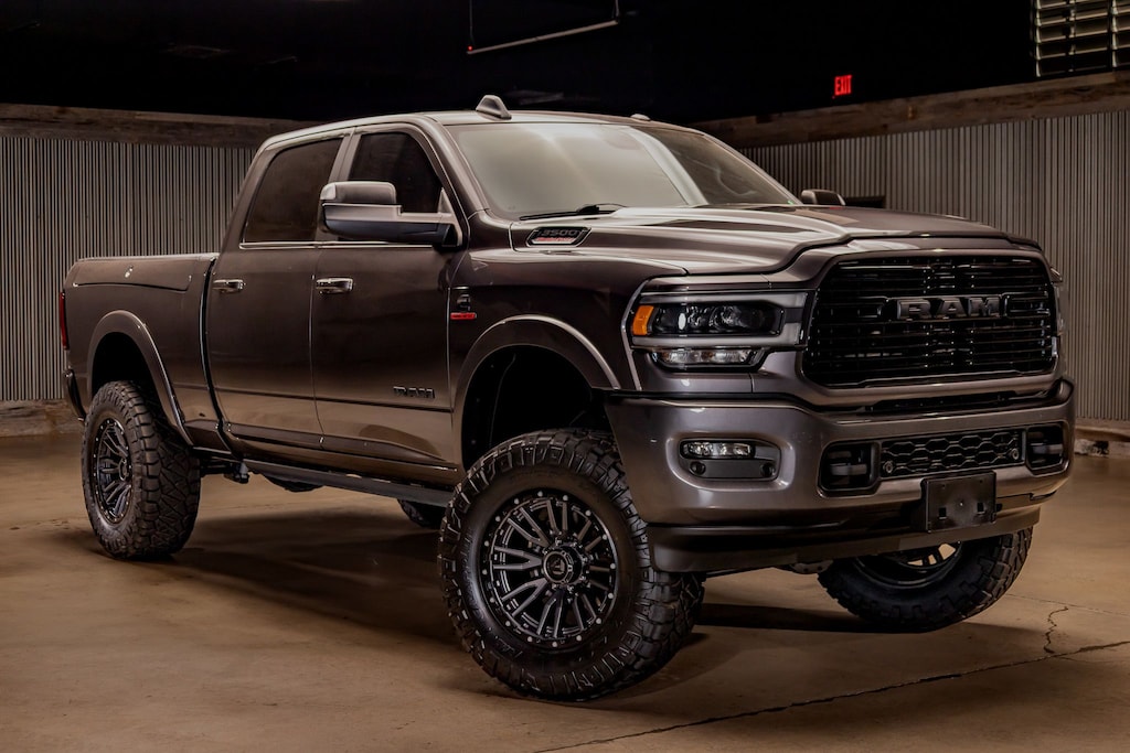 Our Lifted, Diesel powered 2022 RAM 3500 Laramie Night Edition Crew Cab 4X4 in Granite Crystal Metallic makes it easy to handle hard jobs with the Bed Utility, RAMBox, Protection, and Level B Equipment Groups! Motivated by a TurboCharged 6.7 Liter Cummins Diesel 6 Cylinder that provides 370hp and 850lb-ft of torque to a 6 Speed Automatic transmission. This work-friendly Four Wheel Drive truck extends its functional benefits even further with an anti-spin rear differential. To top it off, you're rewarded with a distinctive chrome billet grille, chrome heated power-folding trailer mirrors, LED lighting, fog lamps, bright bumpers, a power sunroof, and a Class V receiver hitch. Our added 5-inch Rough Country lift, custom front driveshaft, N3 shocks, and 20-inch Fuel Off-Road wheels with Nitto tires look good on the road and off!