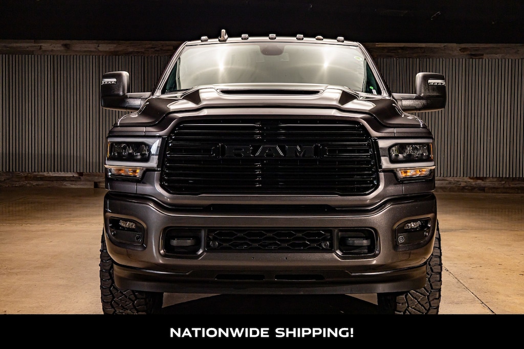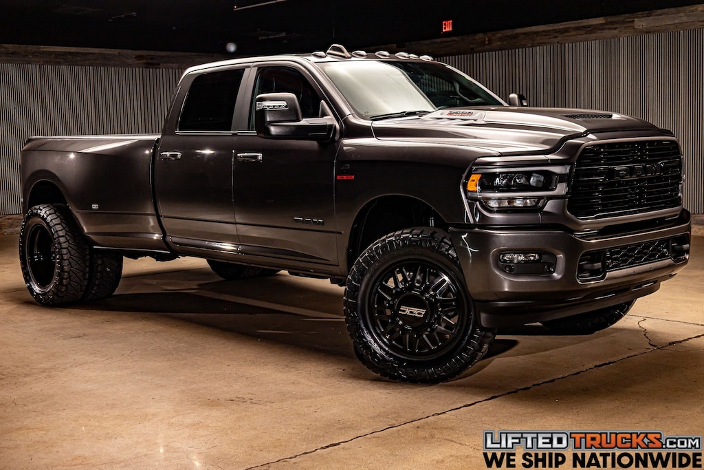 This Lifted 2024 Ram 3500 Laramie features a 1.5-inch ReadyLift Full Front Spring Lift, Fox 2.0 Front & Rear Shocks, Four Wheel Alignment, 22-inch DDC Aftermath Gloss Black Wheels, and 37X12.50R22 Nitto Ridge Grappler Tires. Installed by our Lift Tech, Daniel G. *Modifications are optional and are not included in the advertised price.*