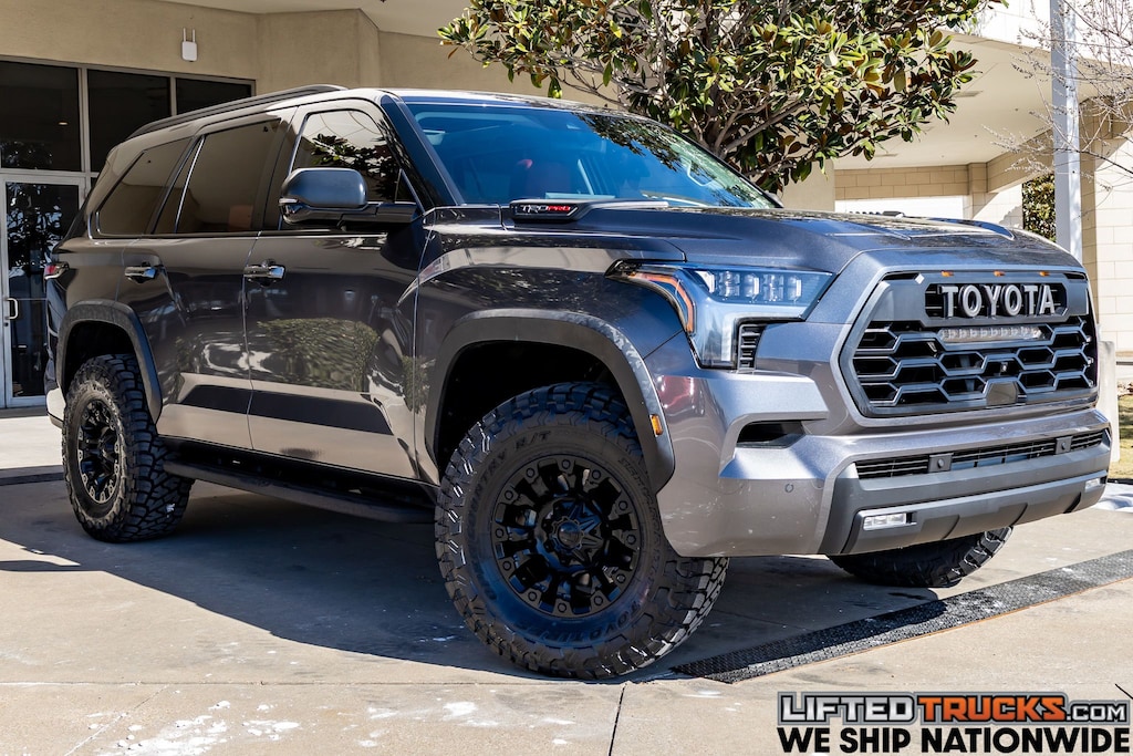 This Lifted 2023 Toyota Sequoia TRD Pro 4WD includes a 2.5-inch Westcott Designs Lift Kit and Four Wheel Alignment, 17-inch Fuel Off-Road D560 Vapor Satin Black Wheels, 35X12.50R17 Toyo Open Country R/T Trail Tires, Professionally Installed Window Tint w/Lifetime Warranty. Installed by our Certified Lift Tech: Mike! *Modifications are optional and are not included in the advertised price.*