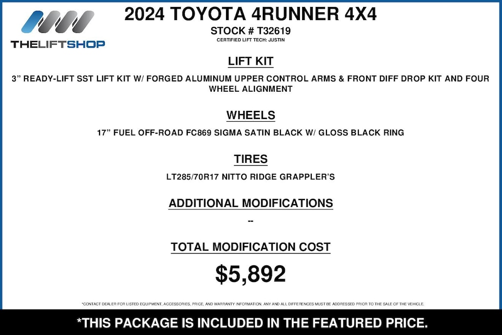 The Lifted Trucks' difference is to provide vehicles that have been enhanced to maintain the highest quality. This may include pre installed products including but not limited to hospital-grade sanitation applications, paint and fabric protection, and theft deterrent solutions. All pre-installed products and their extended benefit plans should be considered optional.