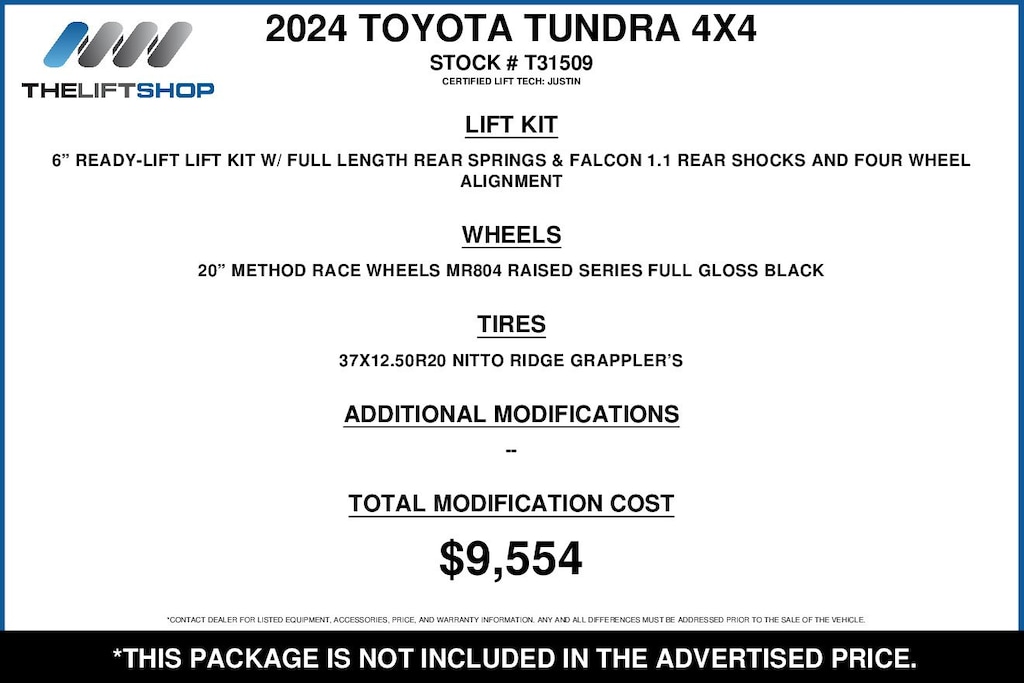 At Lifted Trucks, transparency is our priority. While we strive to provide accurate descriptions of our vehicles, please understand that errors may occur due to the human element involved in the process. All advertised vehicles are subject to actual dealer availability. Certain vehicles listed may not be available, or may have different prices. Prices exclude state tax, license, document preparation fee, smog fee, and finance charges, if applicable. Vehicle options and pricing are subject to change. Prices include all dealer rebates and dealer incentives. Pricing and availability varies by dealership. Please check with your dealer for more information. The dealer is not responsible for specific accessories or options that came with the vehicle when sold new, some of these options might pull from the vin number and be listed on our website, but what you see in the photos is what the vehicle will come with, nothing additional. Images displayed may not be representative of the actual trim level of a vehicle. Colors shown are the most accurate representations available. However, due to the limitations of web and monitor color display, we cannot guarantee that the colors depicted will exactly match the color of the car. Information provided is believed accurate but all specifications, pricing, and availability must be confirmed in writing (directly) with the dealer to be binding. Neither the Dealer nor Dealer.com is responsible for any inaccuracies contained herein and by using this application you the customer acknowledge the foregoing and accept such terms.