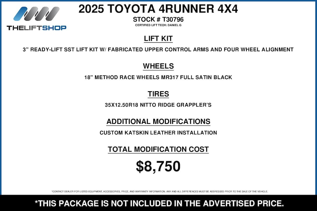 The Lifted Trucks' difference is to provide vehicles that have been enhanced to maintain the highest quality. This may include pre installed products including but not limited to hospital-grade sanitation applications, paint and fabric protection, and theft deterrent solutions. All pre-installed products and their extended benefit plans should be considered optional.