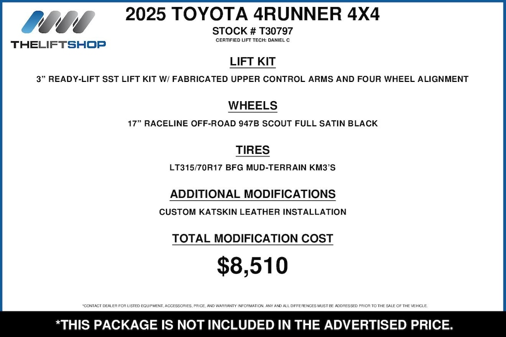 At Lifted Trucks, transparency is our priority. While we strive to provide accurate descriptions of our vehicles, please understand that errors may occur due to the human element involved in the process. All advertised vehicles are subject to actual dealer availability. Certain vehicles listed may not be available, or may have different prices. Prices exclude state tax, license, document preparation fee, smog fee, and finance charges, if applicable. Vehicle options and pricing are subject to change. Prices include all dealer rebates and dealer incentives. Pricing and availability varies by dealership. Please check with your dealer for more information. The dealer is not responsible for specific accessories or options that came with the vehicle when sold new, some of these options might pull from the vin number and be listed on our website, but what you see in the photos is what the vehicle will come with, nothing additional. Images displayed may not be representative of the actual trim level of a vehicle. Colors shown are the most accurate representations available. However, due to the limitations of web and monitor color display, we cannot guarantee that the colors depicted will exactly match the color of the car. Information provided is believed accurate but all specifications, pricing, and availability must be confirmed in writing (directly) with the dealer to be binding. Neither the Dealer nor Dealer.com is responsible for any inaccuracies contained herein and by using this application you the customer acknowledge the foregoing and accept such terms.