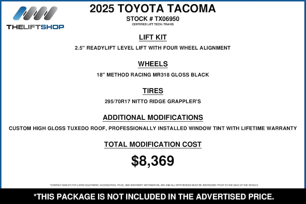 At Lifted Trucks, transparency is our priority. While we strive to provide accurate descriptions of our vehicles, please understand that errors may occur due to the human element involved in the process. All advertised vehicles are subject to actual dealer availability. Certain vehicles listed may not be available, or may have different prices. Prices exclude state tax, license, document preparation fee, smog fee, and finance charges, if applicable. Vehicle options and pricing are subject to change. Prices include all dealer rebates and dealer incentives. Pricing and availability varies by dealership. Please check with your dealer for more information. The dealer is not responsible for specific accessories or options that came with the vehicle when sold new, some of these options might pull from the vin number and be listed on our website, but what you see in the photos is what the vehicle will come with, nothing additional. Images displayed may not be representative of the actual trim level of a vehicle. Colors shown are the most accurate representations available. However, due to the limitations of web and monitor color display, we cannot guarantee that the colors depicted will exactly match the color of the car. Information provided is believed accurate but all specifications, pricing, and availability must be confirmed in writing (directly) with the dealer to be binding. Neither the Dealer nor Dealer.com is responsible for any inaccuracies contained herein and by using this application you the customer acknowledge the foregoing and accept such terms.