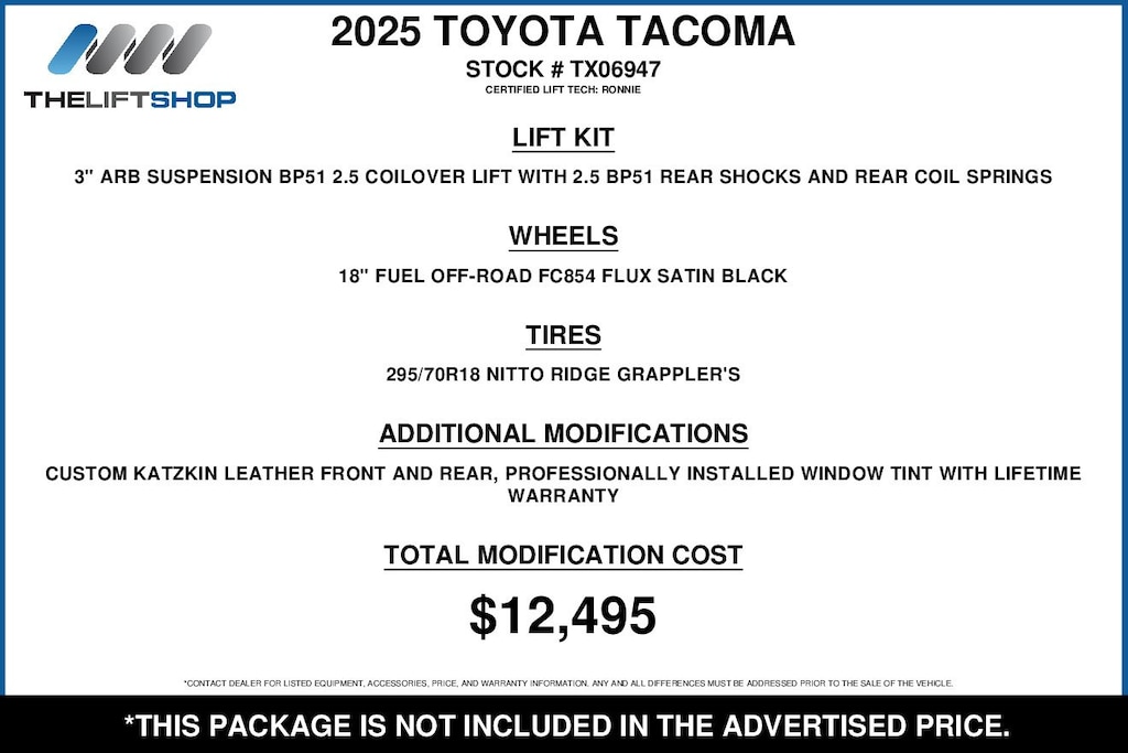 At Lifted Trucks, transparency is our priority. While we strive to provide accurate descriptions of our vehicles, please understand that errors may occur due to the human element involved in the process. All advertised vehicles are subject to actual dealer availability. Certain vehicles listed may not be available, or may have different prices. Prices exclude state tax, license, document preparation fee, smog fee, and finance charges, if applicable. Vehicle options and pricing are subject to change. Prices include all dealer rebates and dealer incentives. Pricing and availability varies by dealership. Please check with your dealer for more information. The dealer is not responsible for specific accessories or options that came with the vehicle when sold new, some of these options might pull from the vin number and be listed on our website, but what you see in the photos is what the vehicle will come with, nothing additional. Images displayed may not be representative of the actual trim level of a vehicle. Colors shown are the most accurate representations available. However, due to the limitations of web and monitor color display, we cannot guarantee that the colors depicted will exactly match the color of the car. Information provided is believed accurate but all specifications, pricing, and availability must be confirmed in writing (directly) with the dealer to be binding. Neither the Dealer nor Dealer.com is responsible for any inaccuracies contained herein and by using this application you the customer acknowledge the foregoing and accept such terms.