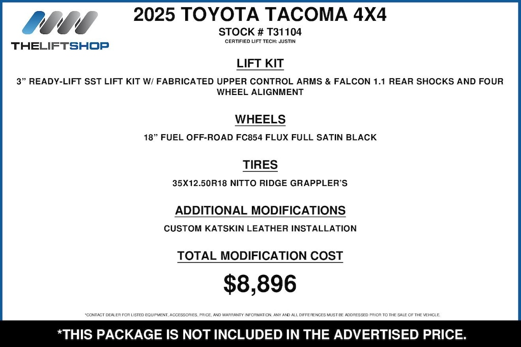 At Lifted Trucks, transparency is our priority. While we strive to provide accurate descriptions of our vehicles, please understand that errors may occur due to the human element involved in the process. All advertised vehicles are subject to actual dealer availability. Certain vehicles listed may not be available, or may have different prices. Prices exclude state tax, license, document preparation fee, smog fee, and finance charges, if applicable. Vehicle options and pricing are subject to change. Prices include all dealer rebates and dealer incentives. Pricing and availability varies by dealership. Please check with your dealer for more information. The dealer is not responsible for specific accessories or options that came with the vehicle when sold new, some of these options might pull from the vin number and be listed on our website, but what you see in the photos is what the vehicle will come with, nothing additional. Images displayed may not be representative of the actual trim level of a vehicle. Colors shown are the most accurate representations available. However, due to the limitations of web and monitor color display, we cannot guarantee that the colors depicted will exactly match the color of the car. Information provided is believed accurate but all specifications, pricing, and availability must be confirmed in writing (directly) with the dealer to be binding. Neither the Dealer nor Dealer.com is responsible for any inaccuracies contained herein and by using this application you the customer acknowledge the foregoing and accept such terms.