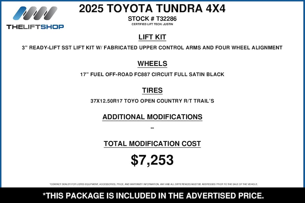 At Lifted Trucks, transparency is our priority. While we strive to provide accurate descriptions of our vehicles, please understand that errors may occur due to the human element involved in the process. All advertised vehicles are subject to actual dealer availability. Certain vehicles listed may not be available, or may have different prices. Prices exclude state tax, license, document preparation fee, smog fee, and finance charges, if applicable. Vehicle options and pricing are subject to change. Prices include all dealer rebates and dealer incentives. Pricing and availability varies by dealership. Please check with your dealer for more information. The dealer is not responsible for specific accessories or options that came with the vehicle when sold new, some of these options might pull from the vin number and be listed on our website, but what you see in the photos is what the vehicle will come with, nothing additional. Images displayed may not be representative of the actual trim level of a vehicle. Colors shown are the most accurate representations available. However, due to the limitations of web and monitor color display, we cannot guarantee that the colors depicted will exactly match the color of the car. Information provided is believed accurate but all specifications, pricing, and availability must be confirmed in writing (directly) with the dealer to be binding. Neither the Dealer nor Dealer.com is responsible for any inaccuracies contained herein and by using this application you the customer acknowledge the foregoing and accept such terms.