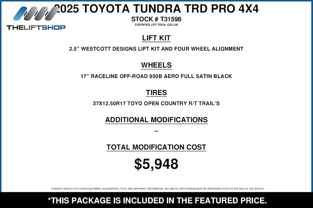 Vehicle Price DOES NOT include dealer or vendor installed upgrades, accessories, or added aftermarket items. Those are reflected in the featured price. Call For Details!*
