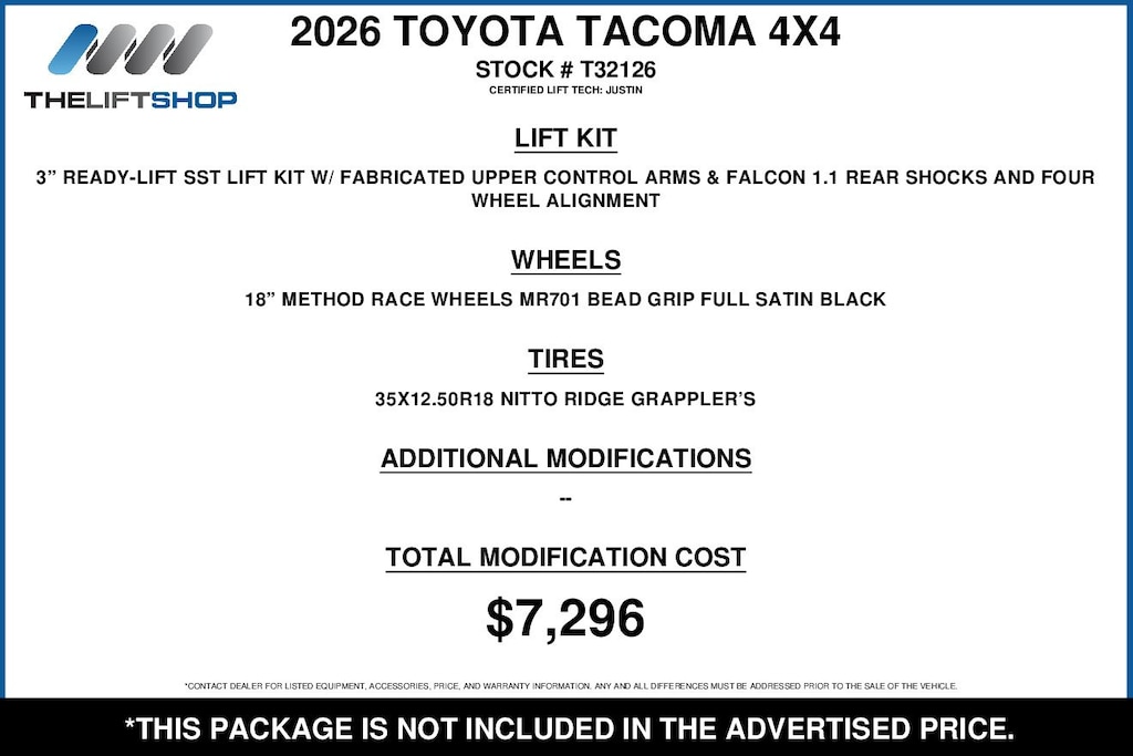 At Lifted Trucks, transparency is our priority. While we strive to provide accurate descriptions of our vehicles, please understand that errors may occur due to the human element involved in the process. All advertised vehicles are subject to actual dealer availability. Certain vehicles listed may not be available, or may have different prices. Prices exclude state tax, license, document preparation fee, smog fee, and finance charges, if applicable. Vehicle options and pricing are subject to change. Prices include all dealer rebates and dealer incentives. Pricing and availability varies by dealership. Please check with your dealer for more information. The dealer is not responsible for specific accessories or options that came with the vehicle when sold new, some of these options might pull from the vin number and be listed on our website, but what you see in the photos is what the vehicle will come with, nothing additional. Images displayed may not be representative of the actual trim level of a vehicle. Colors shown are the most accurate representations available. However, due to the limitations of web and monitor color display, we cannot guarantee that the colors depicted will exactly match the color of the car. Information provided is believed accurate but all specifications, pricing, and availability must be confirmed in writing (directly) with the dealer to be binding. Neither the Dealer nor Dealer.com is responsible for any inaccuracies contained herein and by using this application you the customer acknowledge the foregoing and accept such terms.