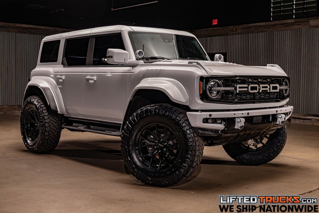 Stay safe as you push your boundaries, knowing smart Ford technology includes automatic braking, a 360-degree camera system, lane-keeping assistance, blind-spot monitoring, and more. It's time to tame tough terrain and master the pavement in our Bronco Raptor! Save this Page and Call for Availability. We Know You Will Enjoy Your Test Drive Towards Ownership! Lifted Trucks has built an unmatched reputation over the last two decades for customizing and selling thousands of the highest quality used vehicles in the country. Our inventory is nationally sourced by our certified buyers who cherry pick only the best of the best of what is available. These vehicles then go through an 82 point inspection process to guarantee quality and safety. Our lift kits are installed by our own factory-trained technicians, who have thousands of hours of experience. The installation is then inspected by a second dedicated quality control technician, before being sent to our state of the art Hunter Engineering laser alignment rack. Our aftermarket research and development team always matches the best fitting lift kit, shocks, and wheel & tire combinations to each individual vehicle for optimal off-road performance, while maintaining an incredibly smooth ride on the street. We never cut any corners on our builds, which is why we only use top quality name brand products when building your Truck, SUV or Jeep. Lifted Trucks has thousands of 5-star reviews, and one of the highest rates of repeat customers in the auto industry. Stop by today, and experience the difference.