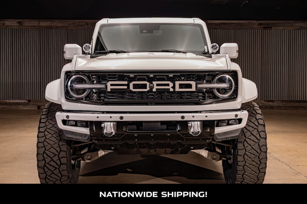 Ready for the wild and the road alike, our 2024 Ford Bronco Raptor 4 Door 4X4 in Oxford White delivers power, capability, and unmistakable style! Motivated by a Twin-TurboCharged 3.0 Liter EcoBoost V6 providing 418hp to a 10 Speed Automatic transmission tuned for trail use. Trail Control, a HOSS 4.0 suspension, FOX Live Valve dampers, and electronic locking axles help you leave civilization in your rearview mirror, and this Four Wheel Drive SUV sees nearly 16mpg on the highway. Our Bronco also shows off its bold confidence with a 1.1-inch Eibach Full Front Spring Lift Kit and Four Wheel Alignment, 20-inch Rotary Forged Vossen HF6-4 Full Gloss Black Wheels, 38X13.50R20 Nitto Ridge Grappler Tires, Custom Paint to Full Top, Both Bumpers, Fender Extensions, Tow Hooks, Hood Handles, Mirrors, Door Handles, Grille, and Custom Smoked Lights, heavy-duty bash plates, rock rails, LED lighting, removable top/doors, a unique Raptor hood, bolt-on fenders, and a heavy-duty modular front bumper with RIGID off-road lighting.