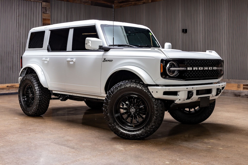 Get into our One Owner 2024 Ford Bronco Wildtrak 4 Door 4X4 with the High Lux Pack in Oxford White, and you can go where the wild things are! Powered by a TurboCharged 2.7 Liter EcoBoost V6 offering 330hp to a 10 Speed Automatic transmission for terrific off-road authority. This Four Wheel Drive SUV attacks adventures with a high-clearance HOSS 3.0 suspension, FOX internal by-pass dampers, and a severe-duty steering rack, and it scores nearly 17mpg on the highway. Iconic Bronco style comes into the picture with LED lighting, a removable top and doors, a powder-coated steel front bumper, fog lamps, bash plates, a bold hood graphic, 2.6-inch Eibach Fox 3.0 Stage 2 Progressive Spring Lift w/Four Wheel Alignment, 20-inch Method Racing MR803 Gloss Black Wheels, 37X12.250R20 Nitto Ridge Grapplers, Custom Color Matched Front and Rear Bumpers, Black Out Hood Trim, Handles and Grille, Professionally Installed Window Tint w/Lifetime Warranty, and a swing-out tailgate.