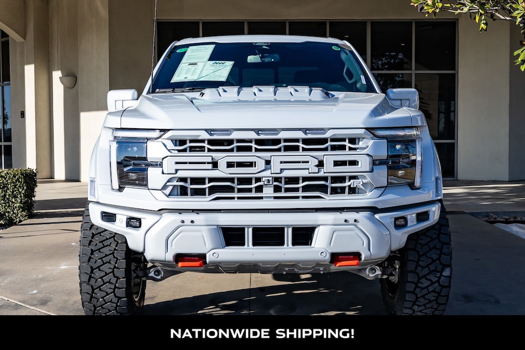 Our Clean Carfax 2025 Ford F-150 Raptor SuperCrew 4X4 with the 803A R Pack is a bold driving machine built to go almost anywhere in Space White Metallic! Motivated by a SuperCharged 5.2 Liter V8 supplying 720hp to a 10 Speed Automatic transmission with dedicated off-road modes. They work with exclusive Raptor suspension upgrades, Trail Control, and an electronic locking differential to handle pavement, trails, and uncharted territory, and it returns nearly 15mpg on the highway. Revved-up Raptor design cues include LED lighting, cast-aluminum running boards, hood-mounted heat extractors, fender flares, and our 803A Pack for a modular front bumper, a twin-panel sunroof, a bed liner, and plenty of aggressive Raptor R accents.