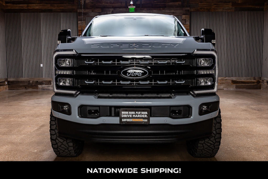 Our Diesel-powered 2026 Ford F-250 King Ranch Crew Cab 4X4 offers an exclusive combination of style and substance in Glacier Gray Metallic Tri-Coat good looks! Motivated by a TurboCharged 6.7 Liter High Output PowerStroke Diesel V8 serving up 500hp and 1200lb-ft of torque to a 10 Speed Automatic transmission. This fantastic Four Wheel Drive truck also impresses with incredible functionality, as shown by a Pro Power Onboard generator and built-in scales for payload/trailer-tongue weights. Our F-250 turns heads with an aggressive 5-inch BDS Stage II Radius Arm Lift Kit w/Extended Stroke Fox 2.0's and Four Wheel Alignment, 22-inch American Force Talon Gloss Black Wheels, 3X12.50R22 Nitto Ridge Grapplers, Custom Chrome Delete Package Grille, Door Handles, Window Trim, Side Emblems, Rear Tailgate, Step Trim, Professionally Installed Window Tint w/Lifetime Warranty, twin-panel sunroof, Pro Power onboard, LED lighting, power running boards, and a power tailgate.