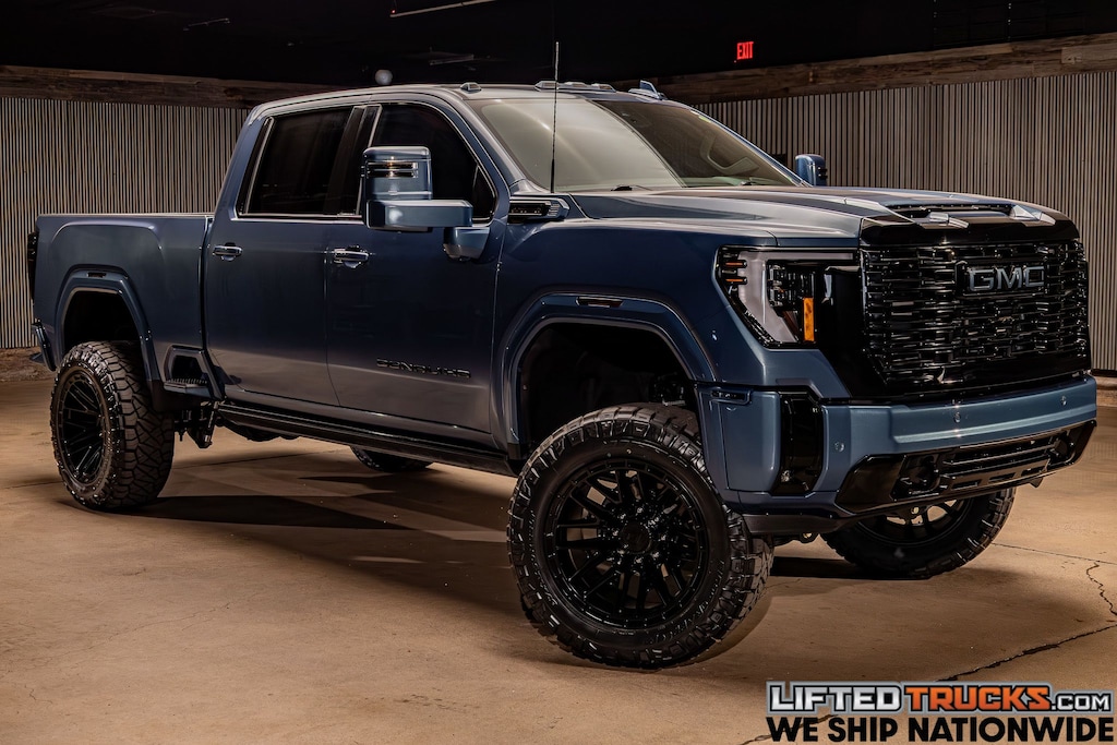 This Lifted 2025 GMC Sierra 2500HD Denali Reserve features a 5-inch BDS Non Torsion Bar Drop Lift Kit, Fox 2.0 Front & Rear Shocks, Four Wheel Alignment, 22-inch Arena A114 Battle Full Gloss Black Wheels, 37X13.50R22 Nitto Ridge Grappler Tires, Custom Paint Match, and Smoked Tail Lamps. Installed by our Lift Tech, Daniel G. *Modifications are optional and are not included in the advertised price.*