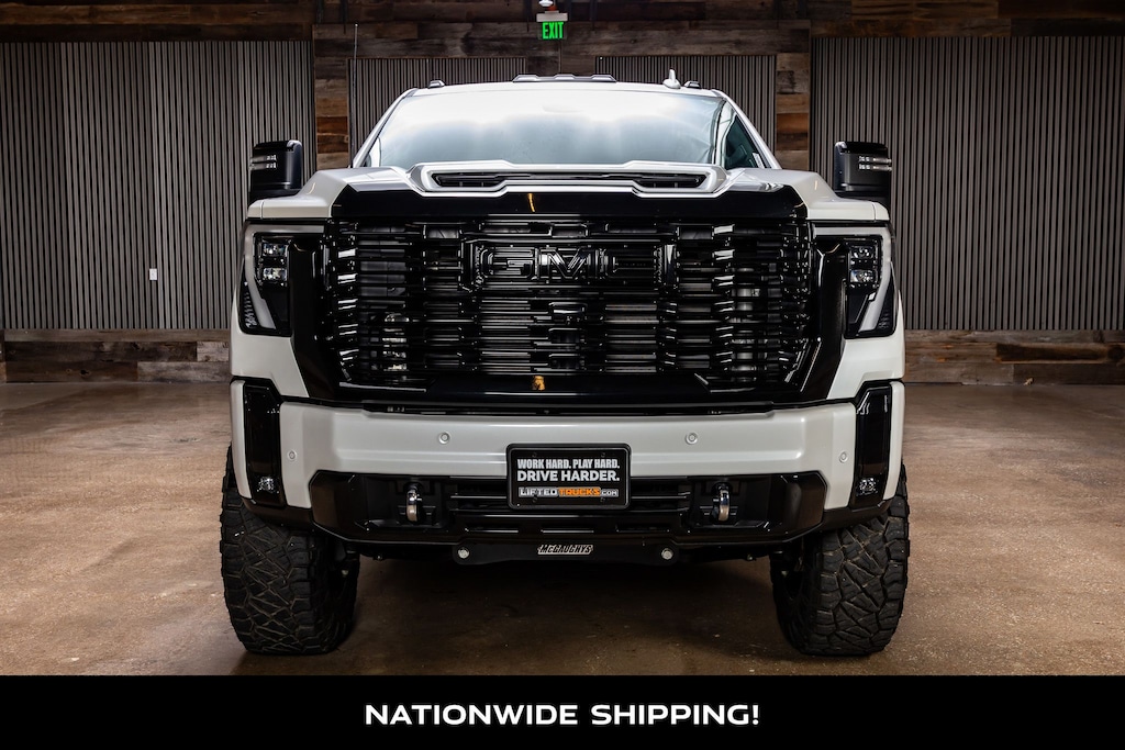 This Lifted 2025 GMC Sierra 2500HD Denali Ultimate Crew Cab 4X4 includes a 4.5-inch McGaughy's Lift with Stainless Inserts and Fox 2.0 Smooth Body Shocks, 20-inch Fuel Off-Road FC873 Charger Satin Black Wheels, 37X12.50R20 Nitto Ridge Grappler Tires, Custom Black Out Chrome Package-Front Grille, Window Trim, Moldings, Emblems, Professionally Installed Window Tint w/Lifetime Warranty. Installed by our Certified Lift Tech: Casey! *Modifications are optional and are not included in the advertised price.*